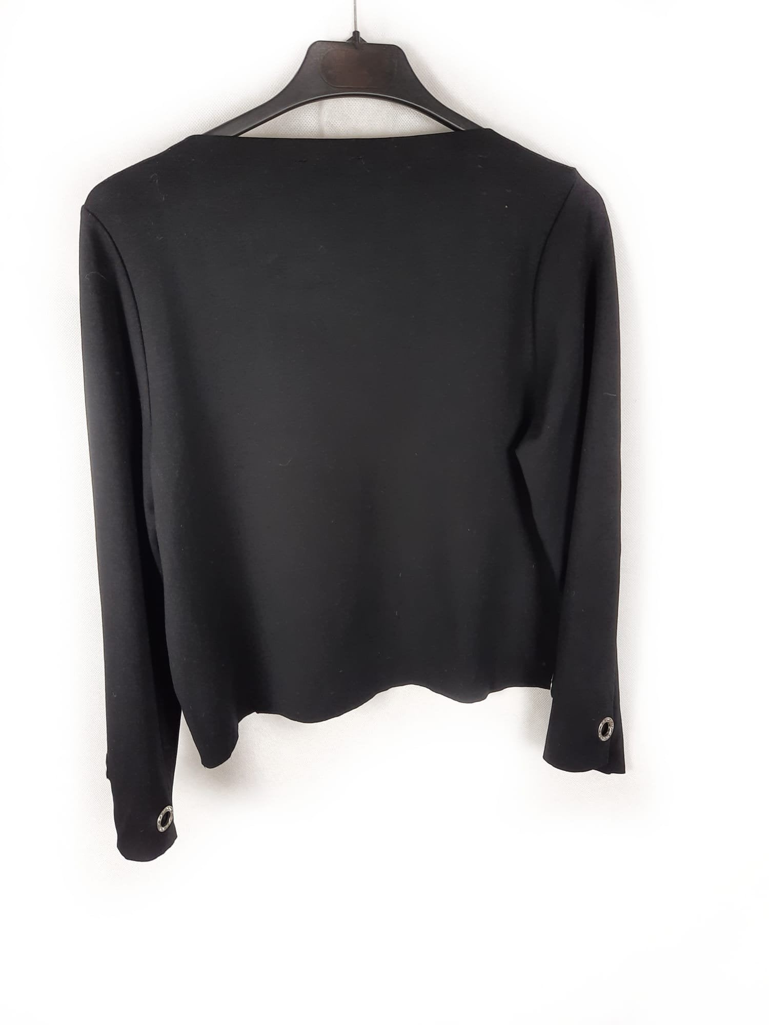 Top negro con detalle de argollas plateadas con brillantes. elástico. De sisa a sisa 47 cm largo 46 cm