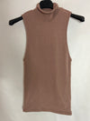 95% algodón. Top cuello alto algodón marrón calro. Tejido elástico