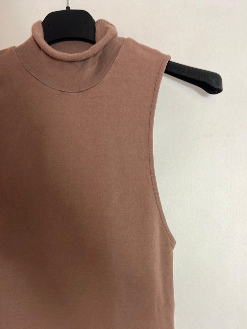 ZARA. Top cuello alto algodón marrón. T S