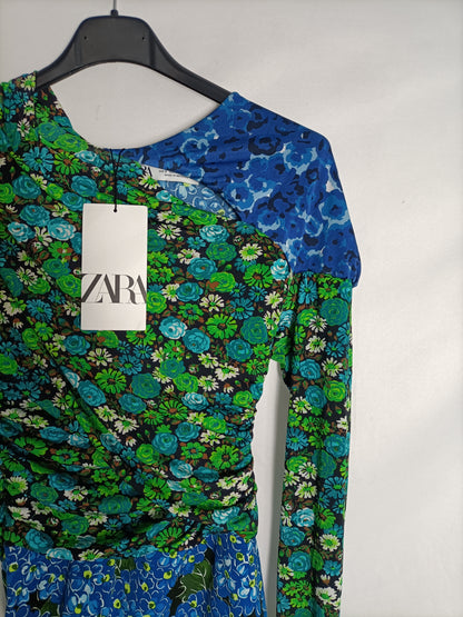 NUEVO CON ETIQUETA. top de flores escote cruzado fruncido