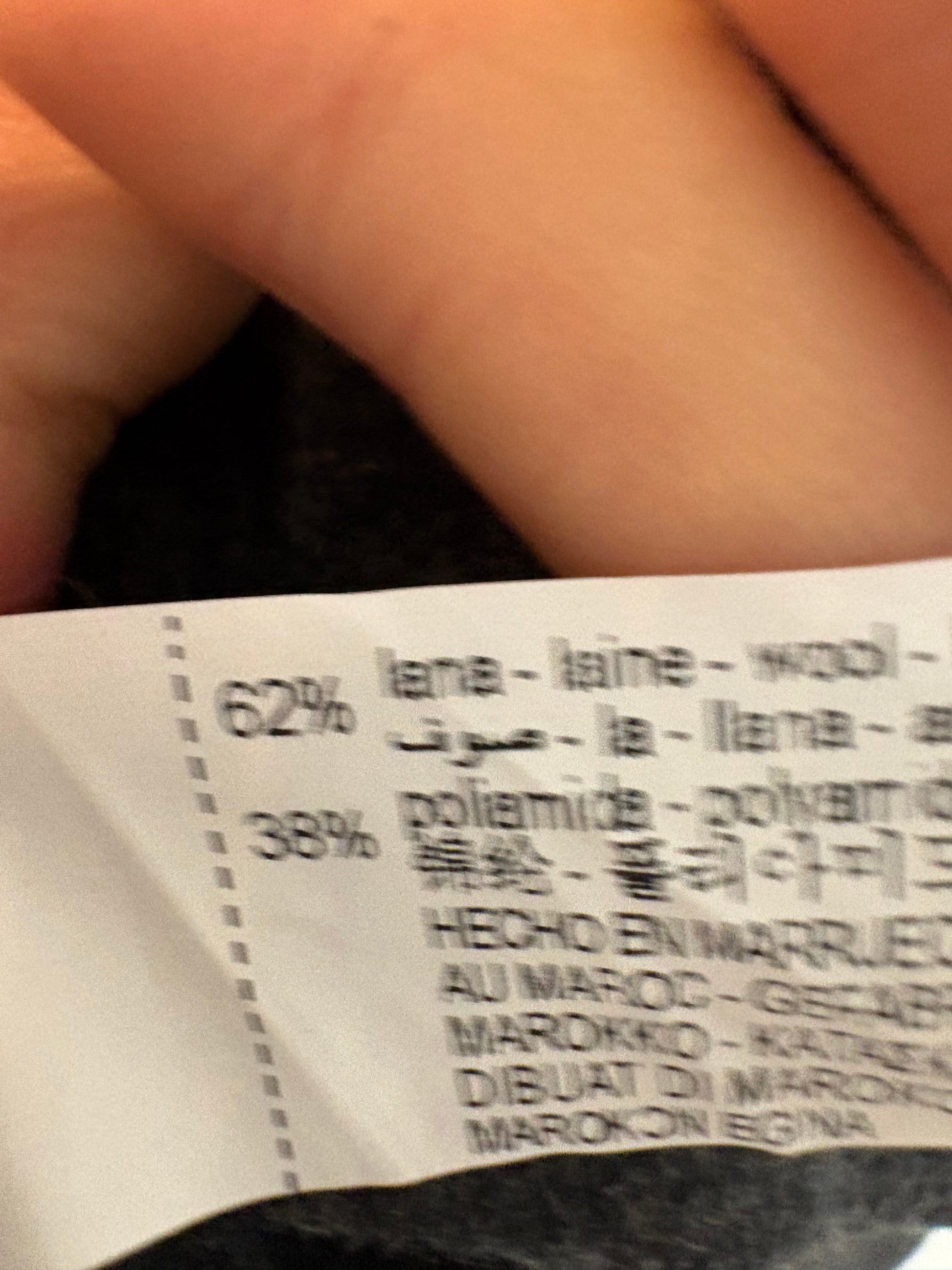 Espalda 49 cm, largo 58 cm. No elástico . 60 % lana