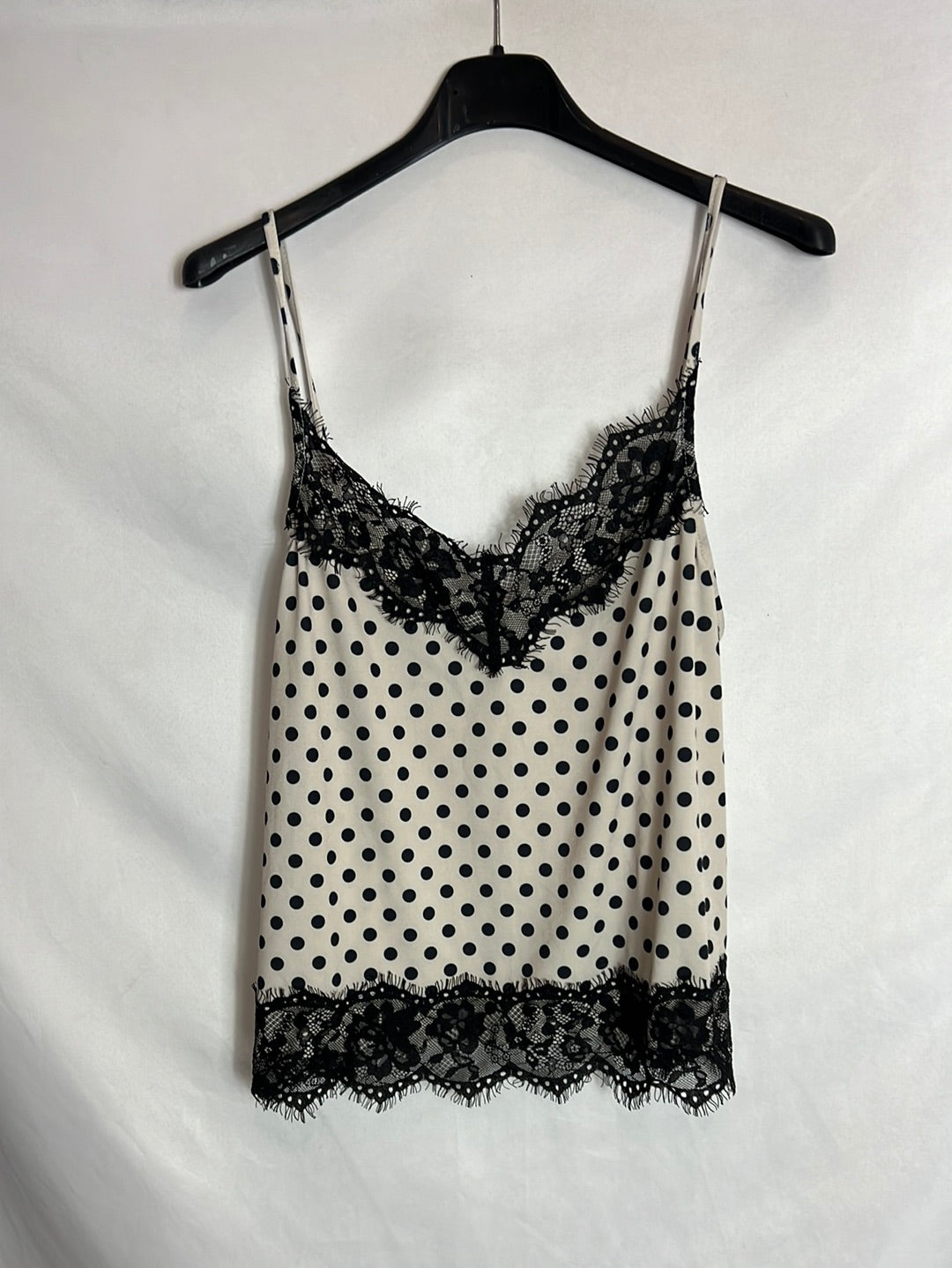 top beige lencero con lunares. Detalles de encaje.largo 56cm