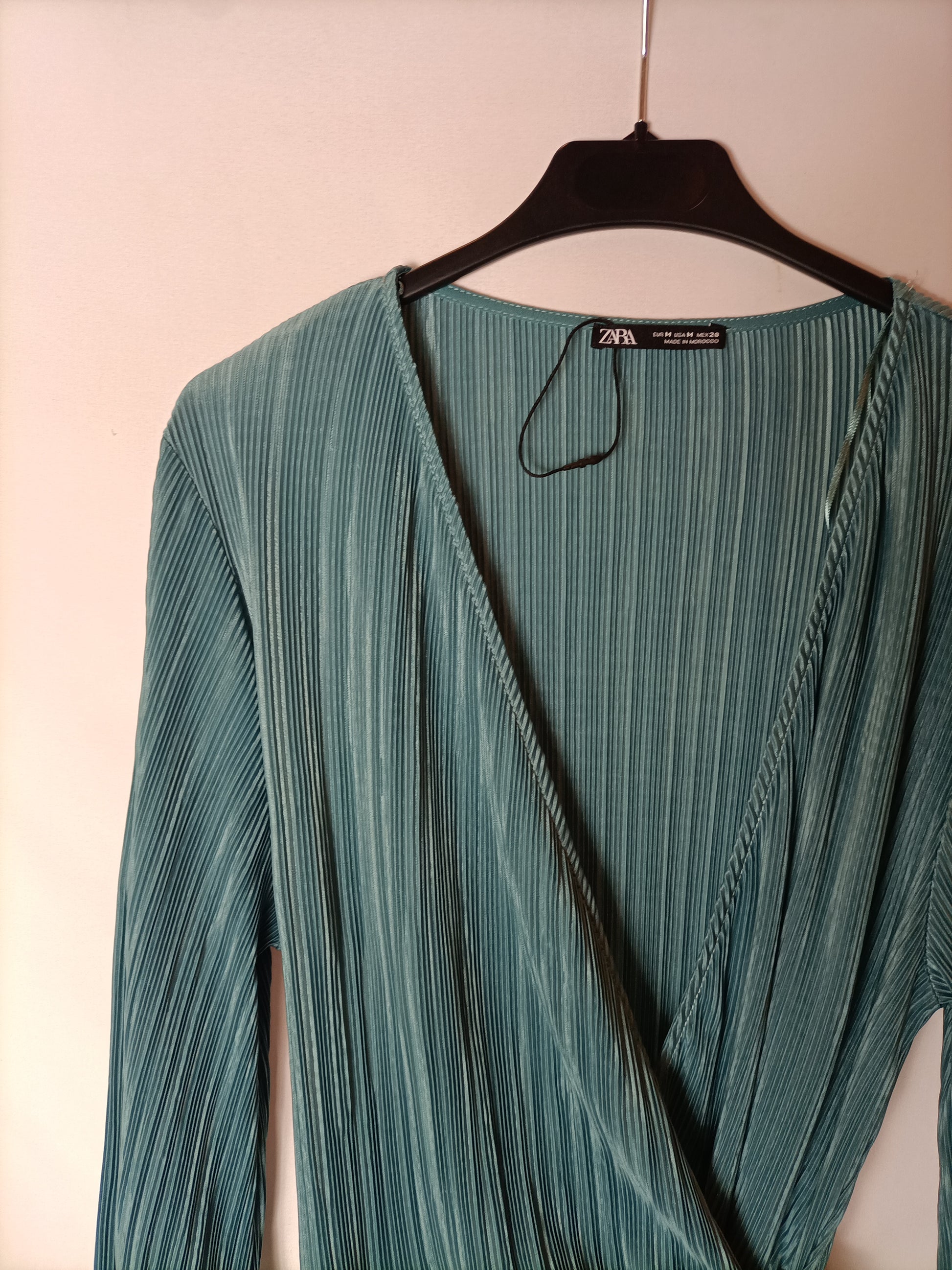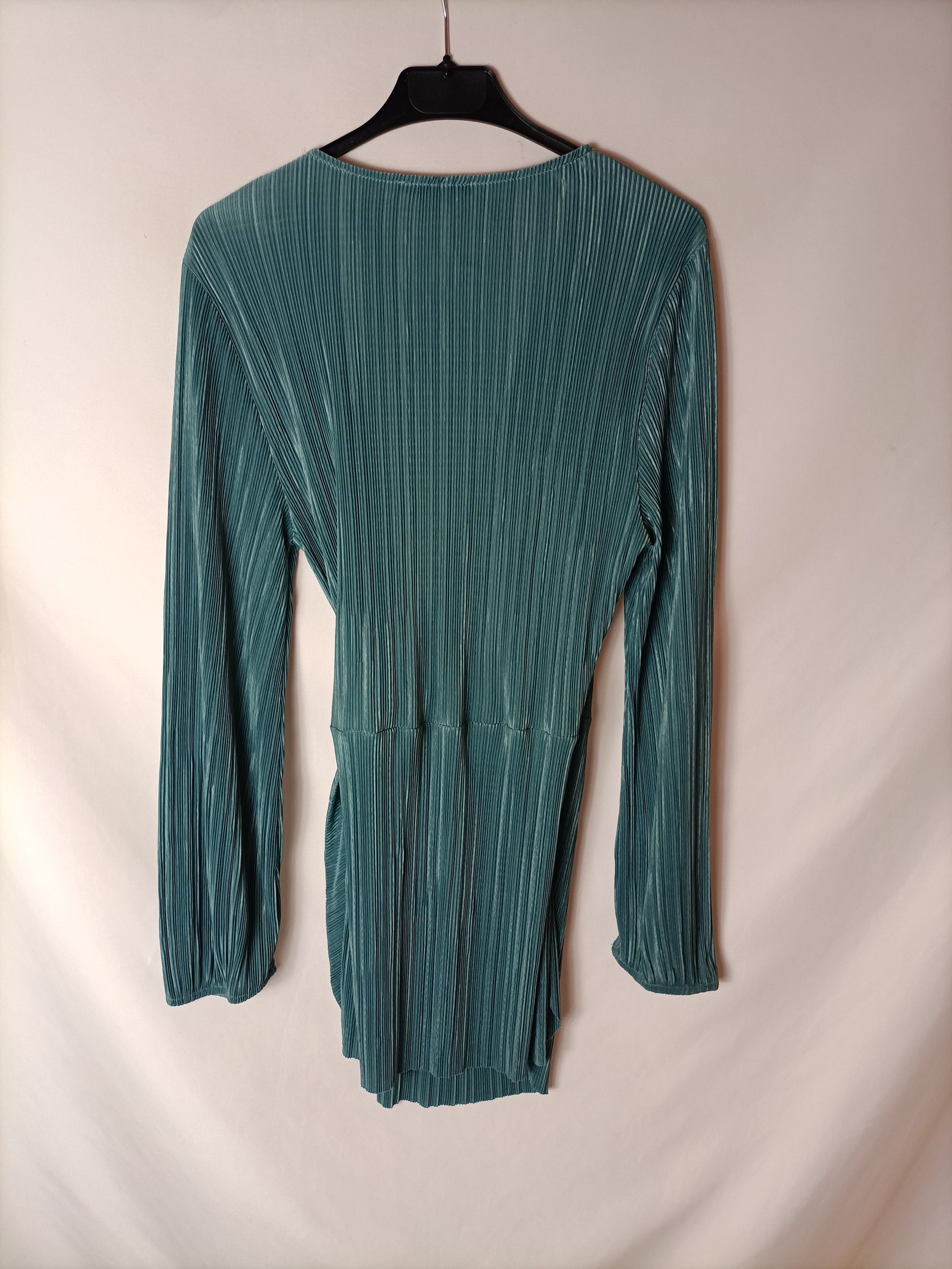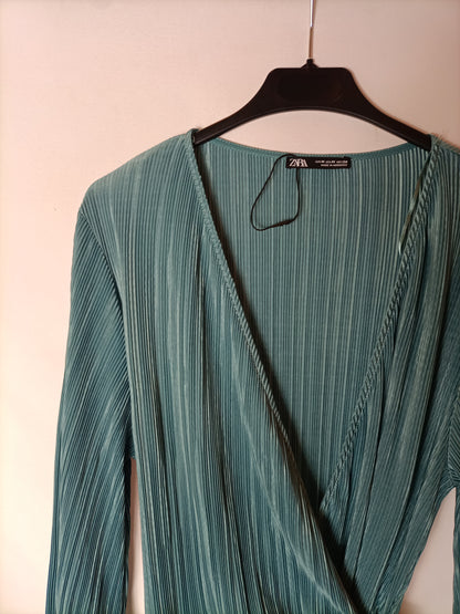 ZARA. Top/ vestido manga larga plisado azul claro. T M