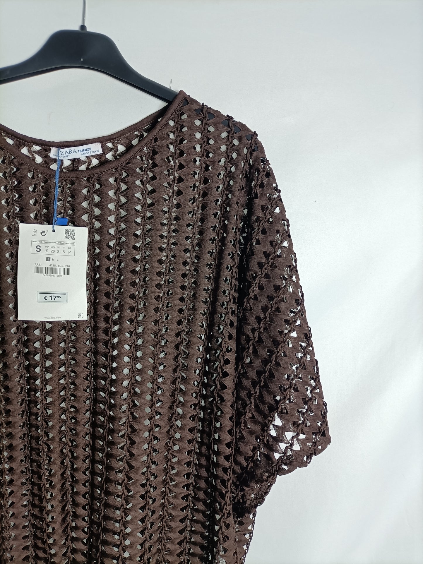 ZARA. Top marrón troquelado T.s