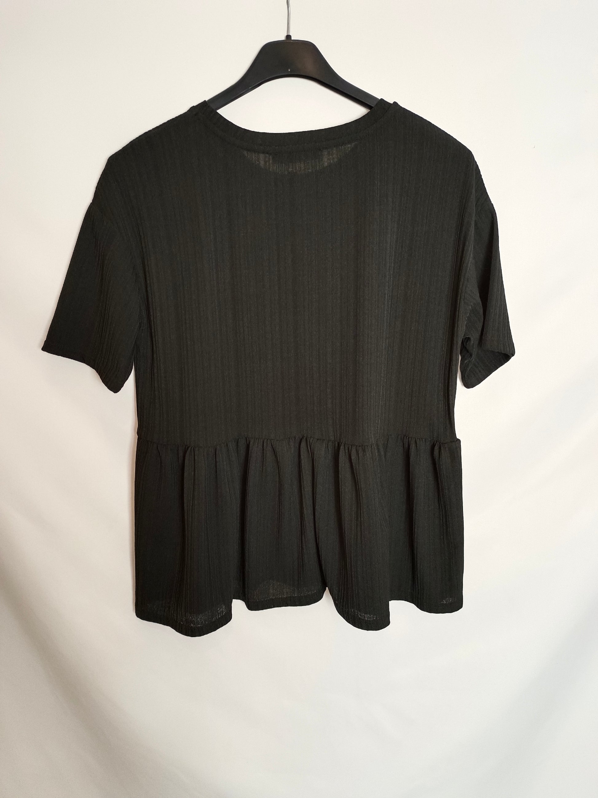 NUEVO CON ETIQUETA. Top negro canalé volante. Fluido y elásticos.