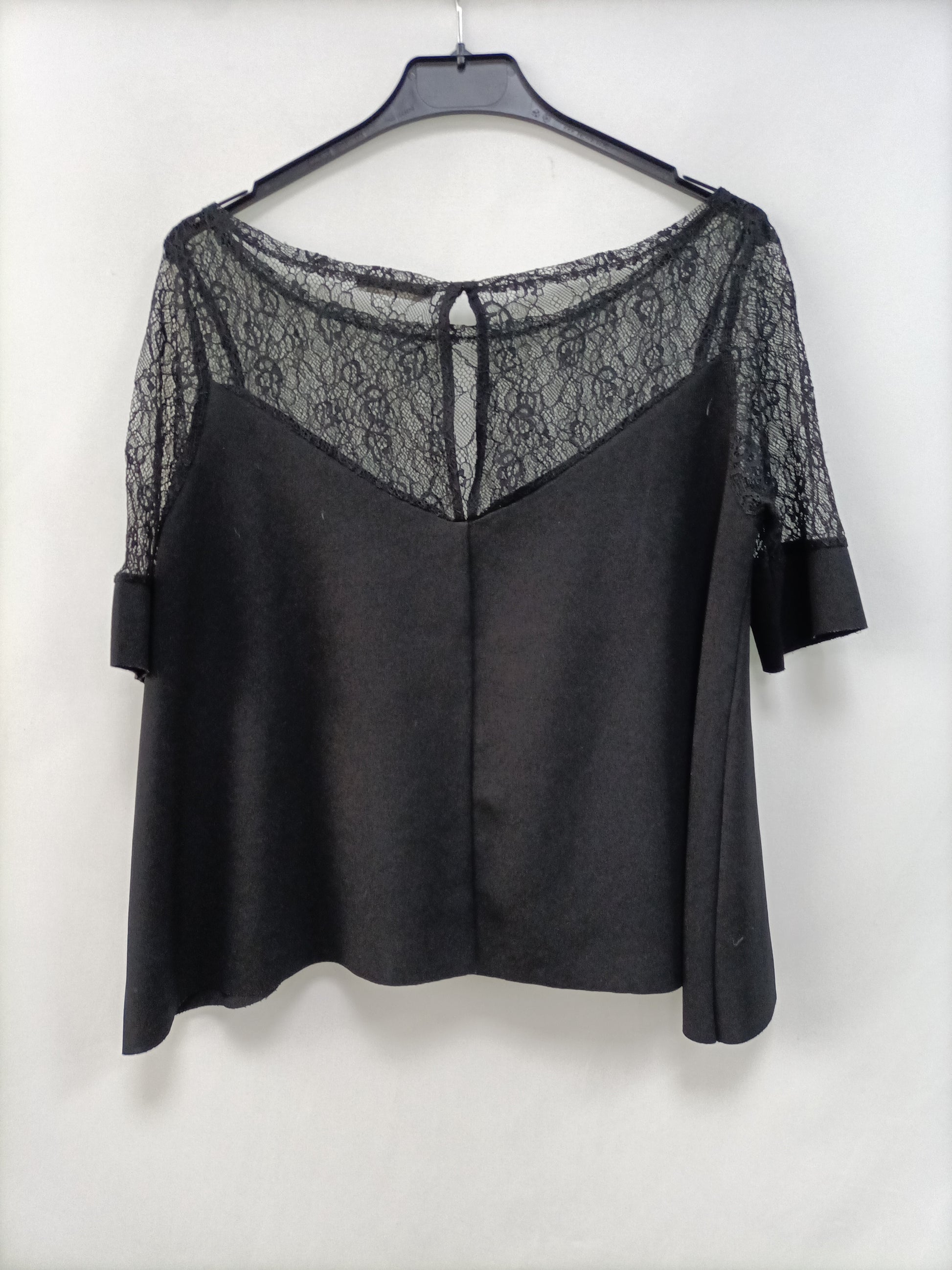 top negro con encaje en los hombros. de sisa a sisa 47 cm largo 48 cm