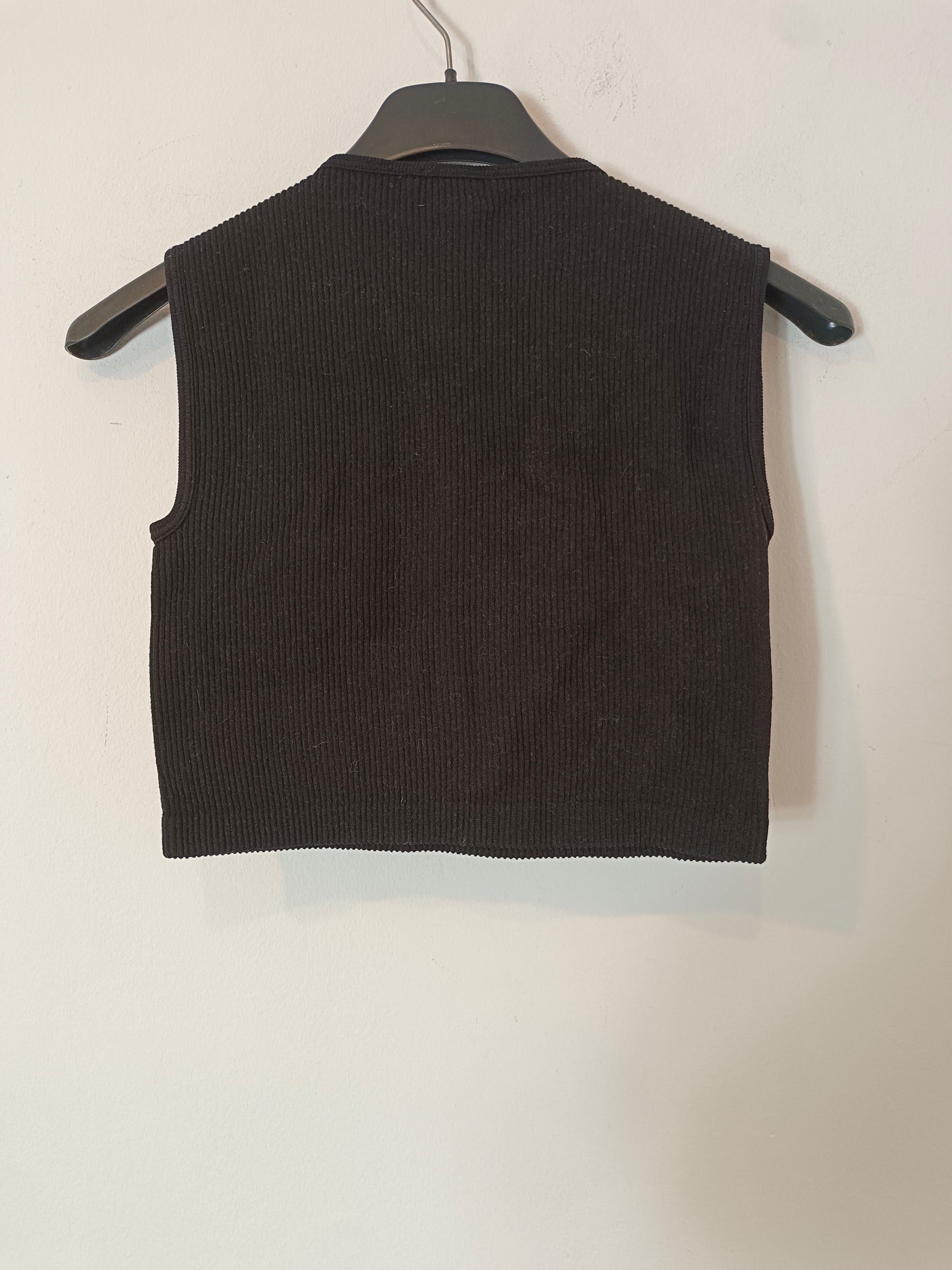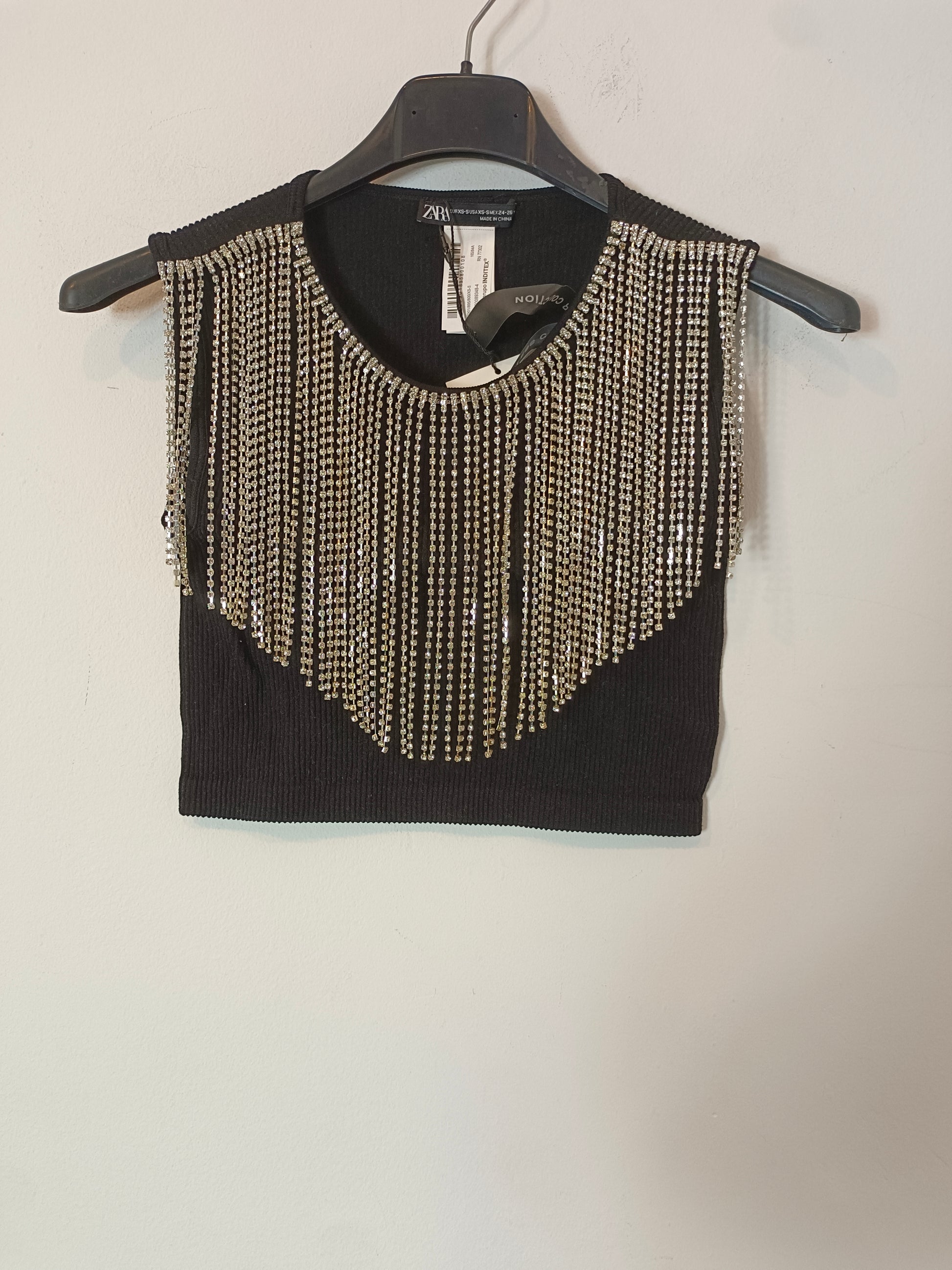 ZARA. Top negro flecos brillantes T.xs/s