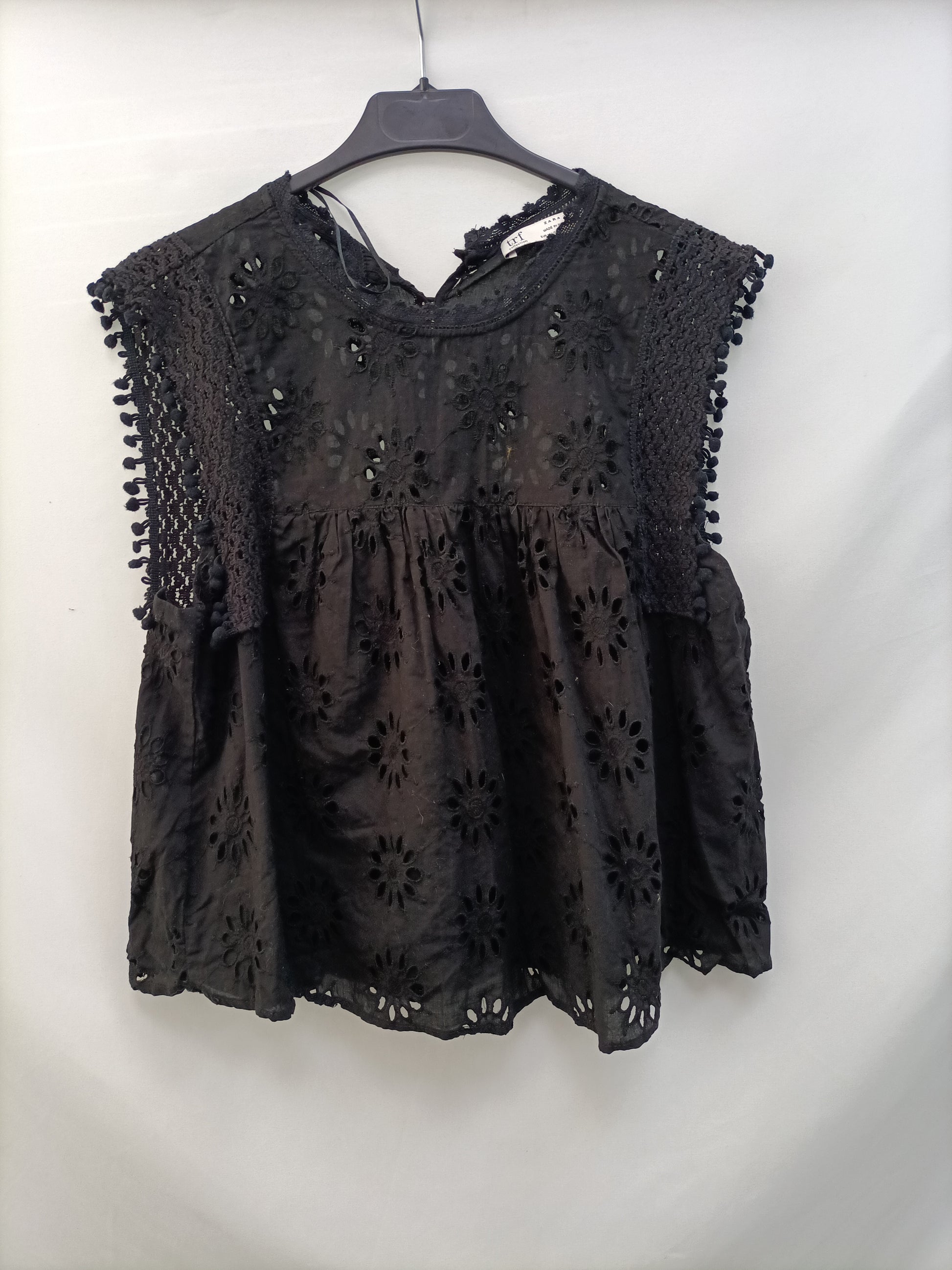 ZARA.Top negro troquelado T.M