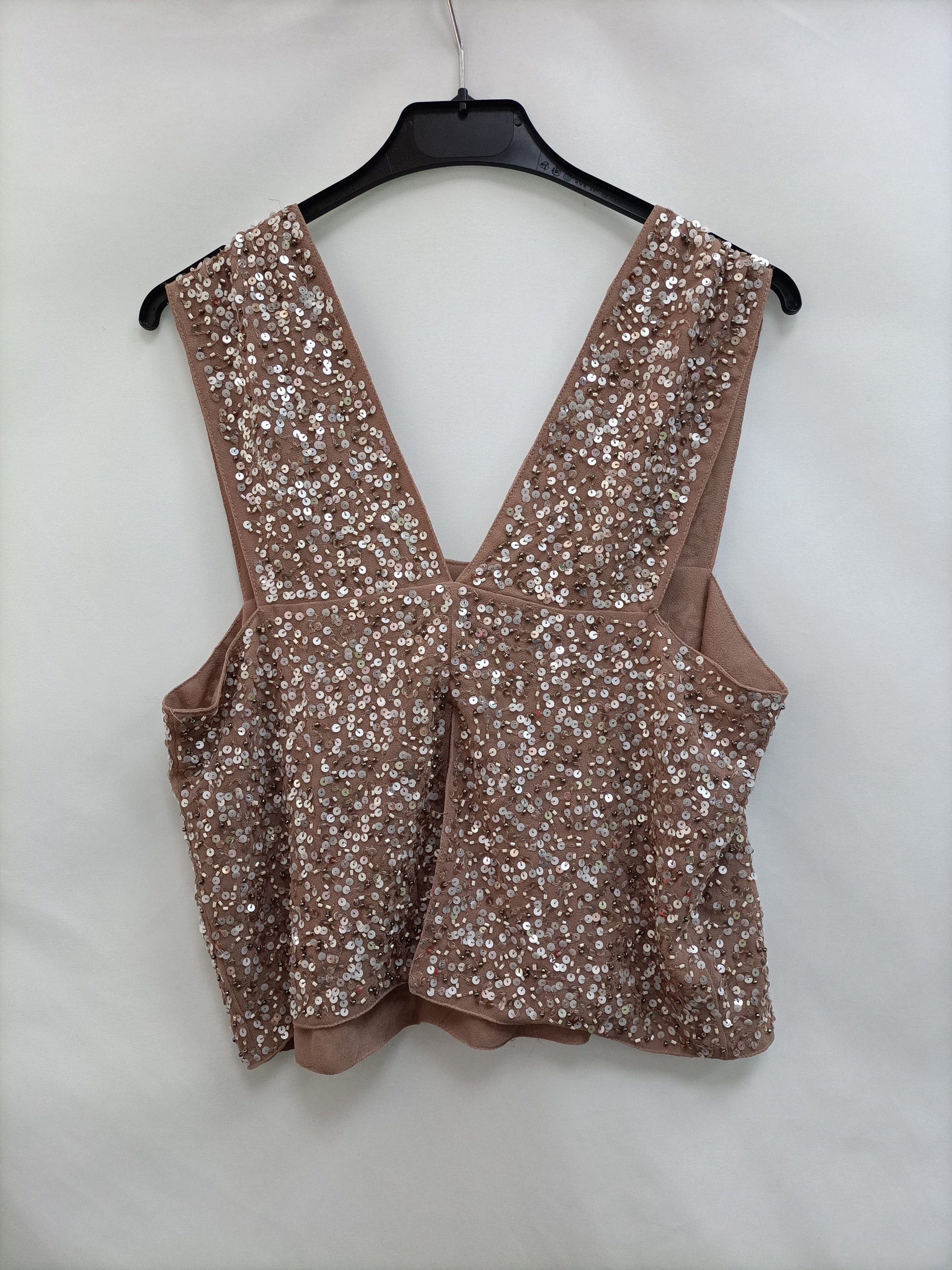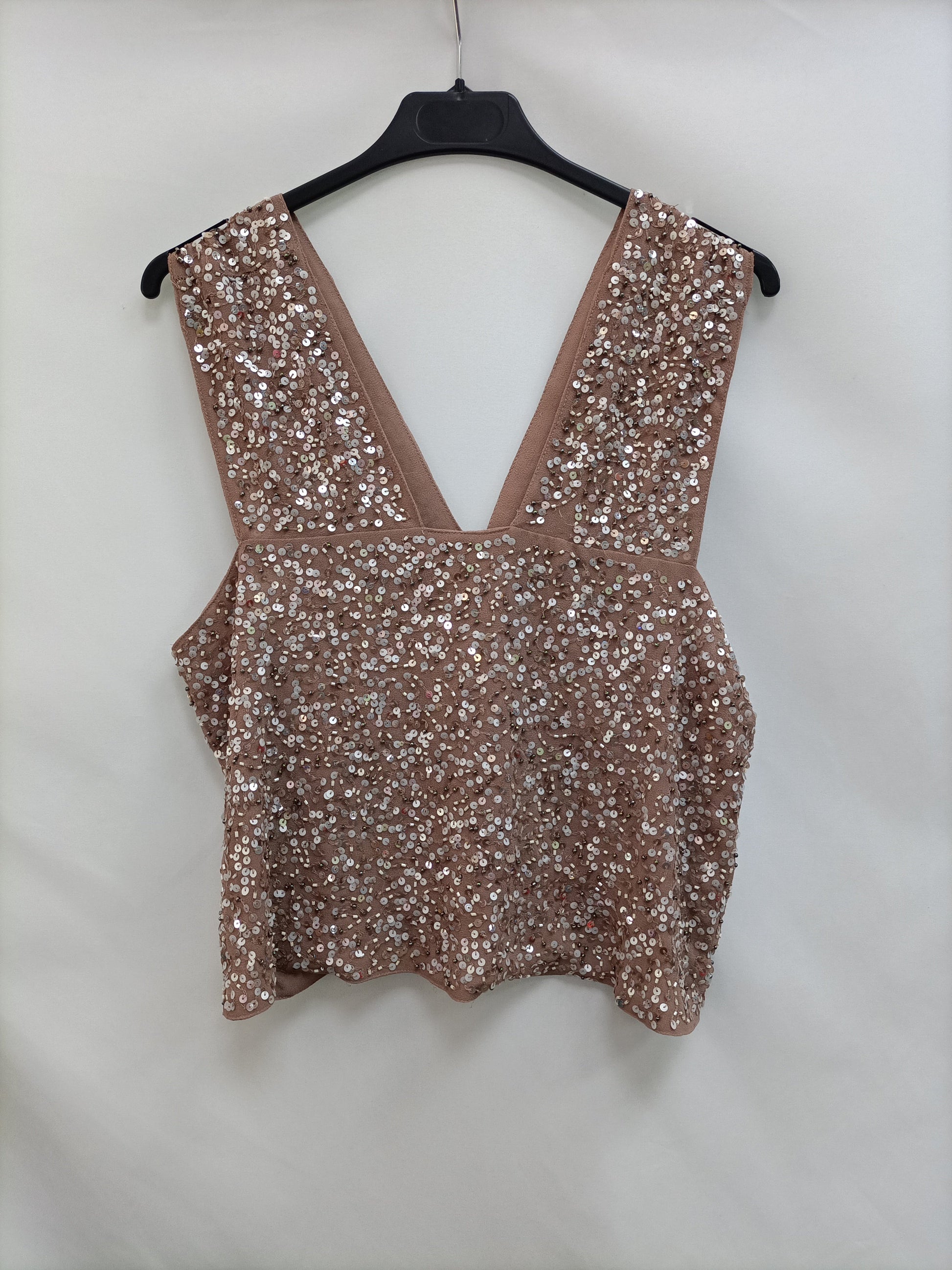 Top color nude lentejuelas. De sisa a sisa 46 cm. largo50 cm TARA:le faltan algunas lentejuelas