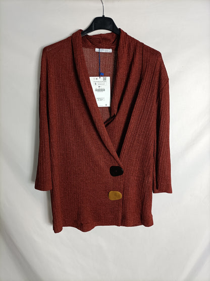 NUEVO CON ETIQUETA. Top de punto con botones de nácar. elástico y ancho.