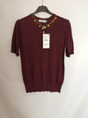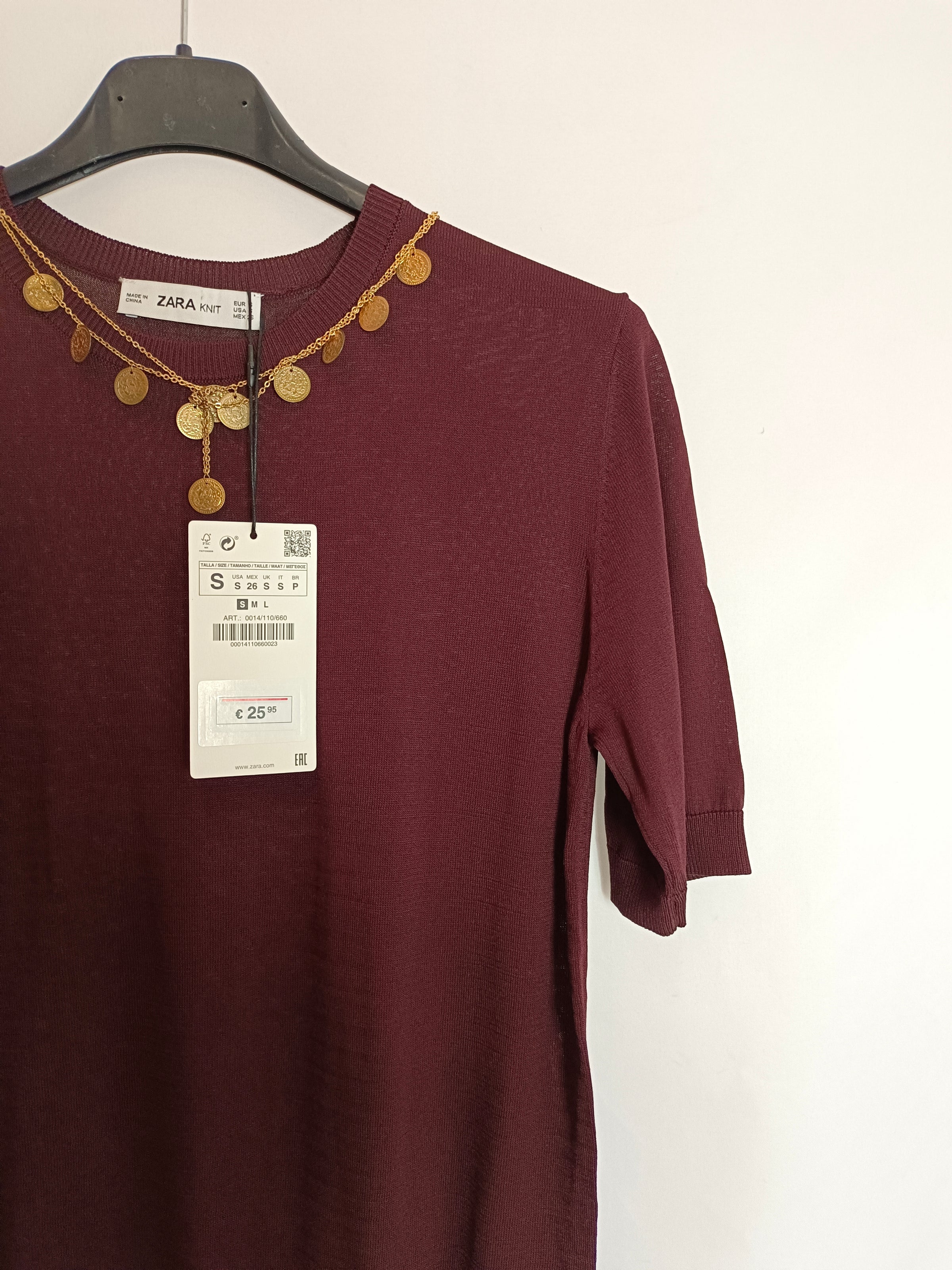 NUEVO CON ETIQUETA. top de punto burdeos con detalle de collar de monedas