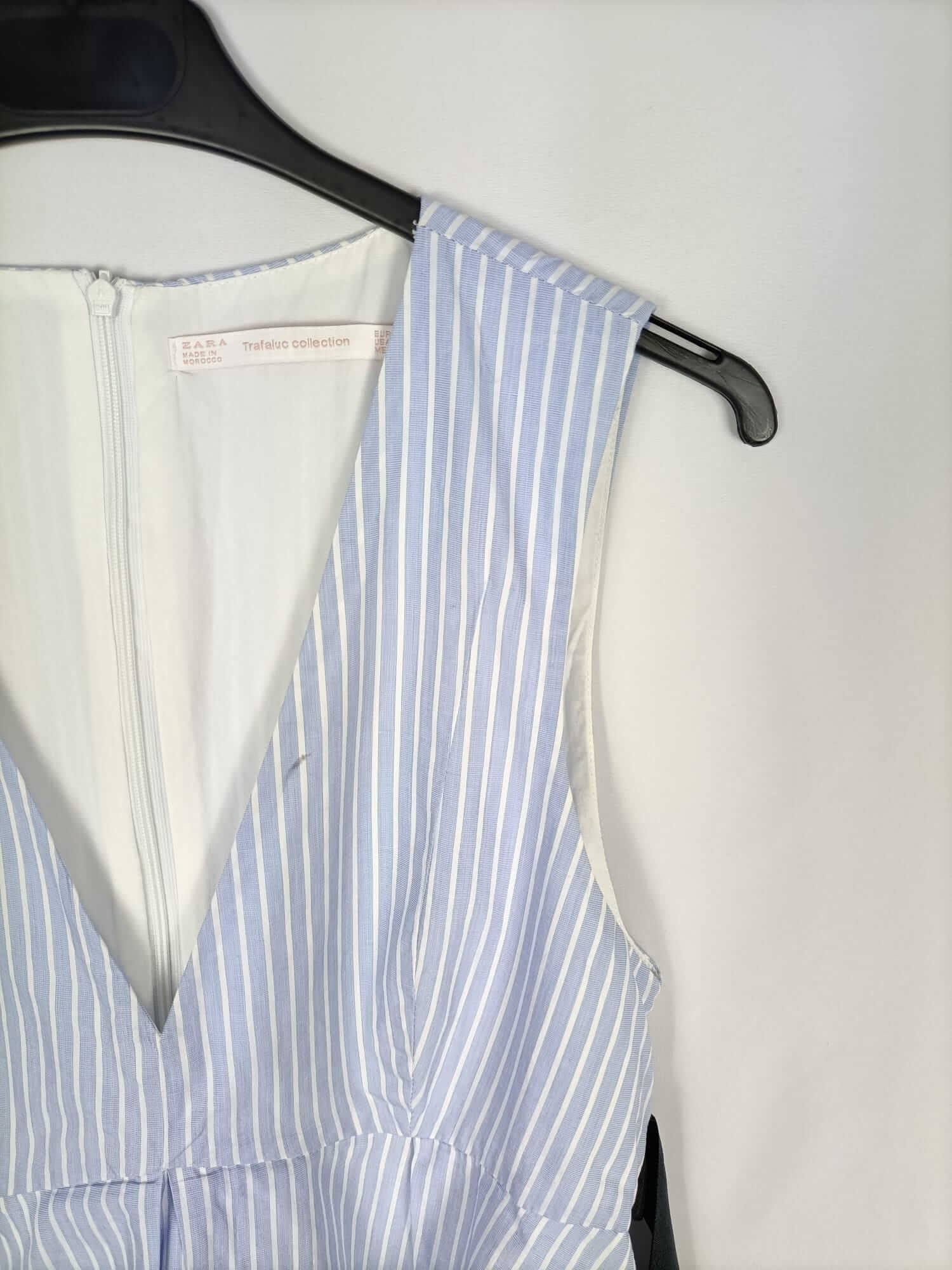 Zara.s. Top de rayas celeste y blanco con lazada en la espalda. No elástico. De sisa a sisa 42 cm largo 54 cm