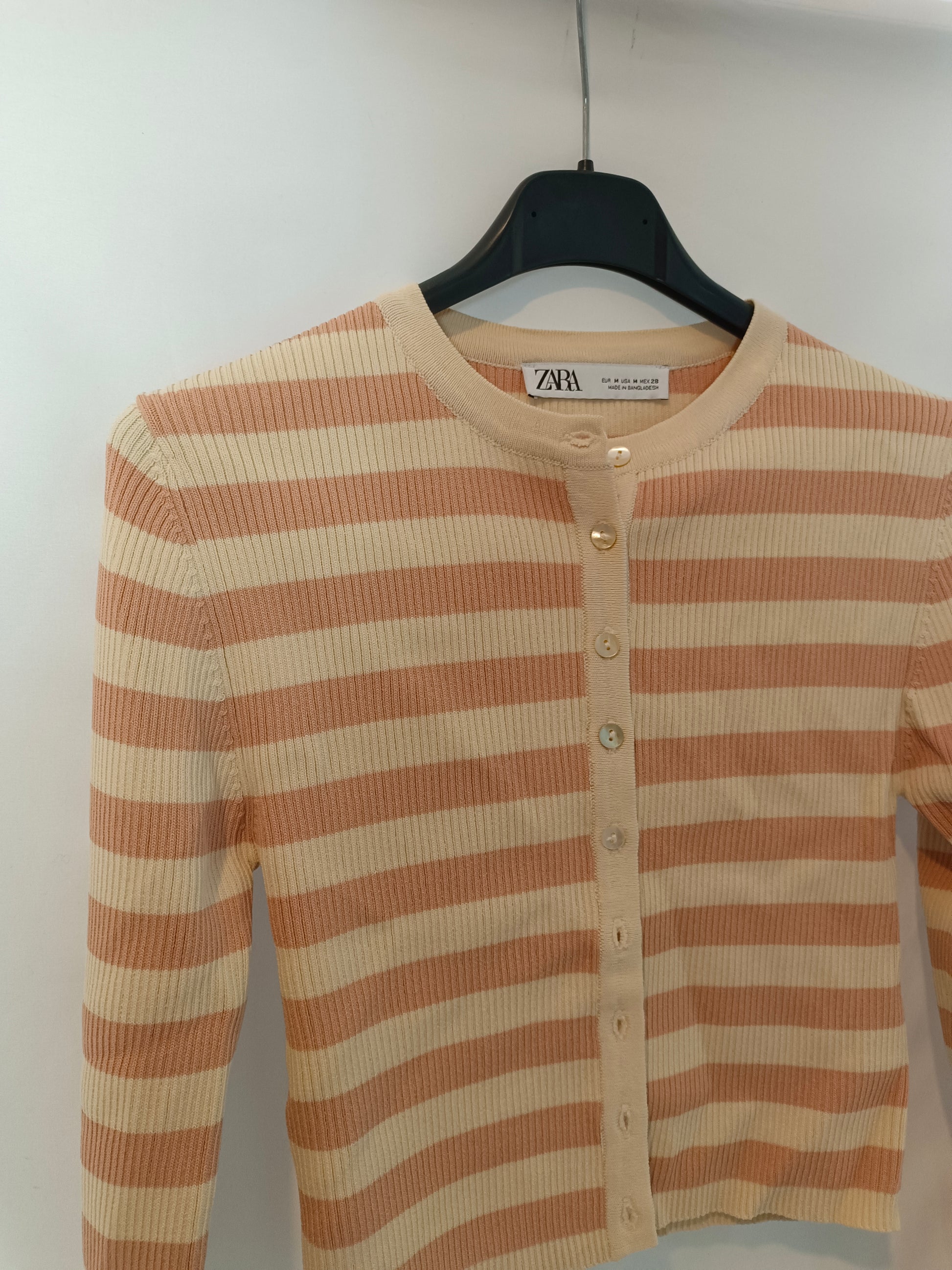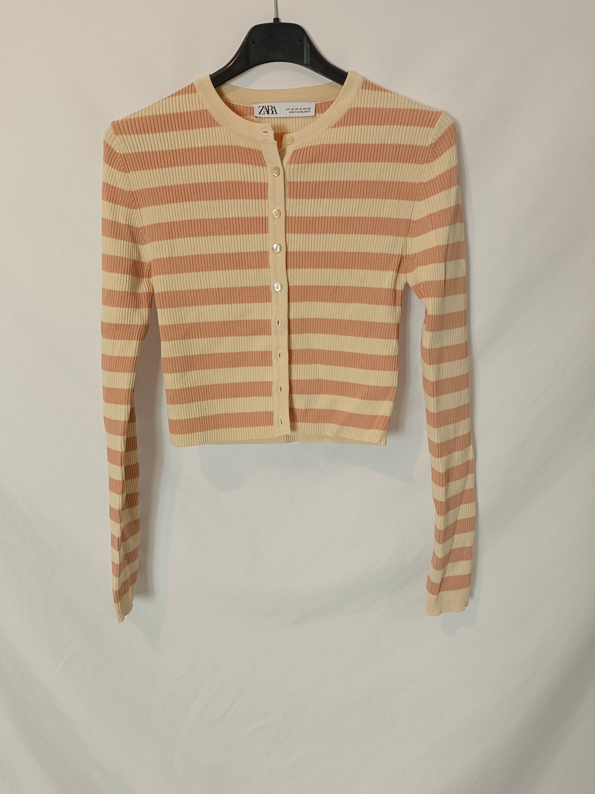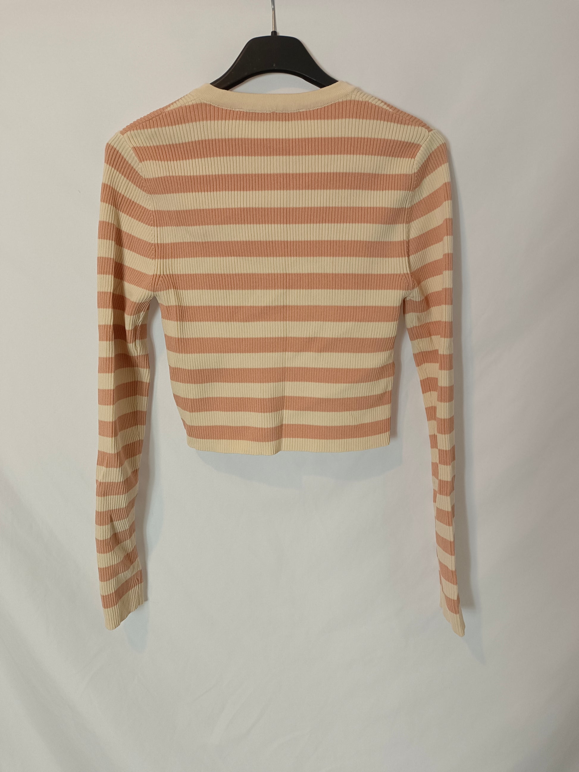 ZARA. Top/rebeca de rayas canalé T.m