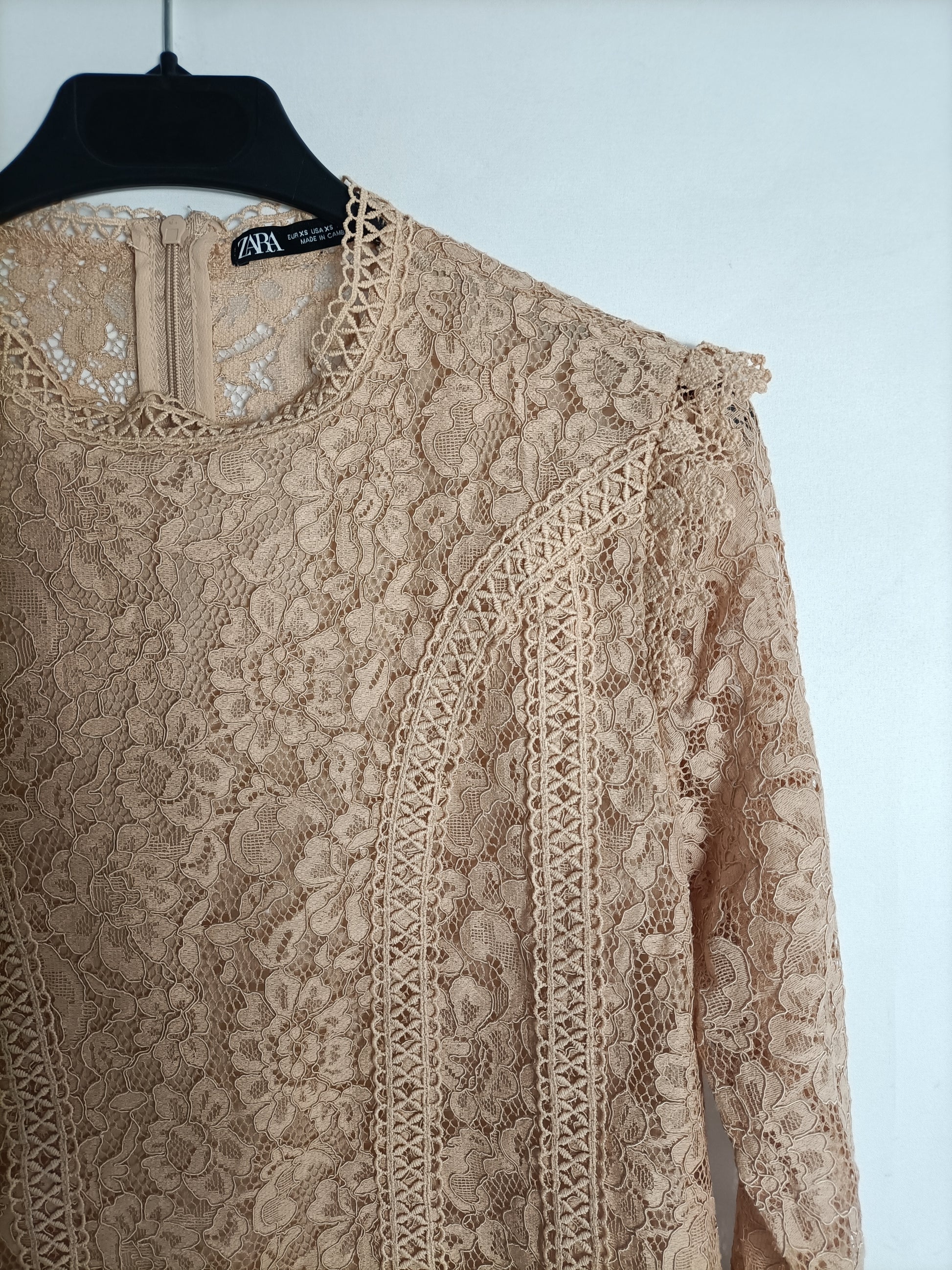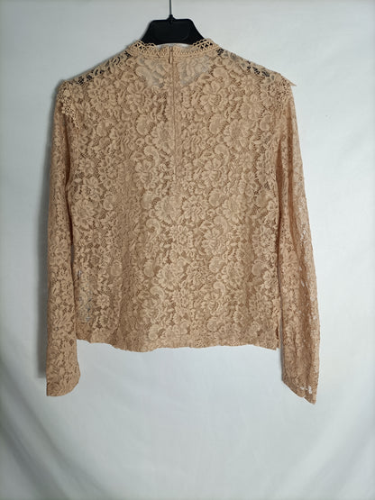 Top rosa nude de encaje. semitransparente. de sisa a sisa 41 cm