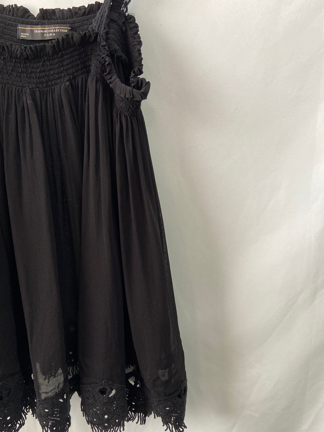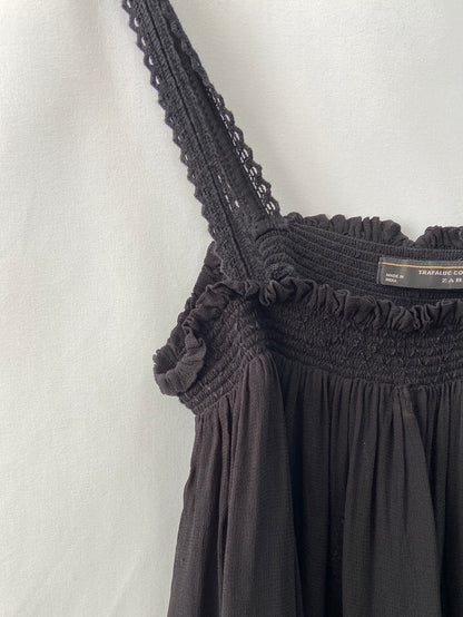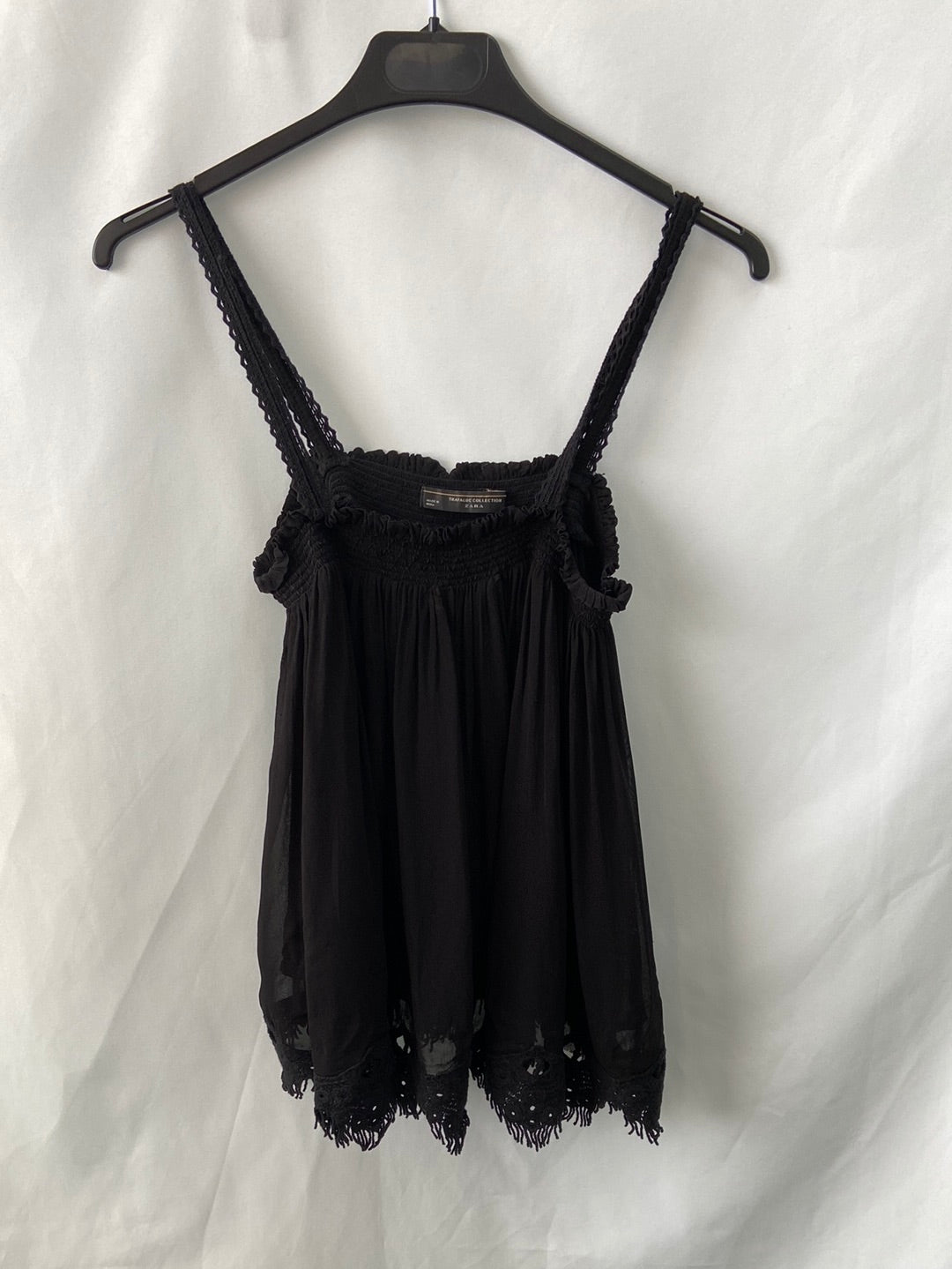 Top lencero negros con encaje en la parte de abajo y elástico en en el escote. Largo 39 cm