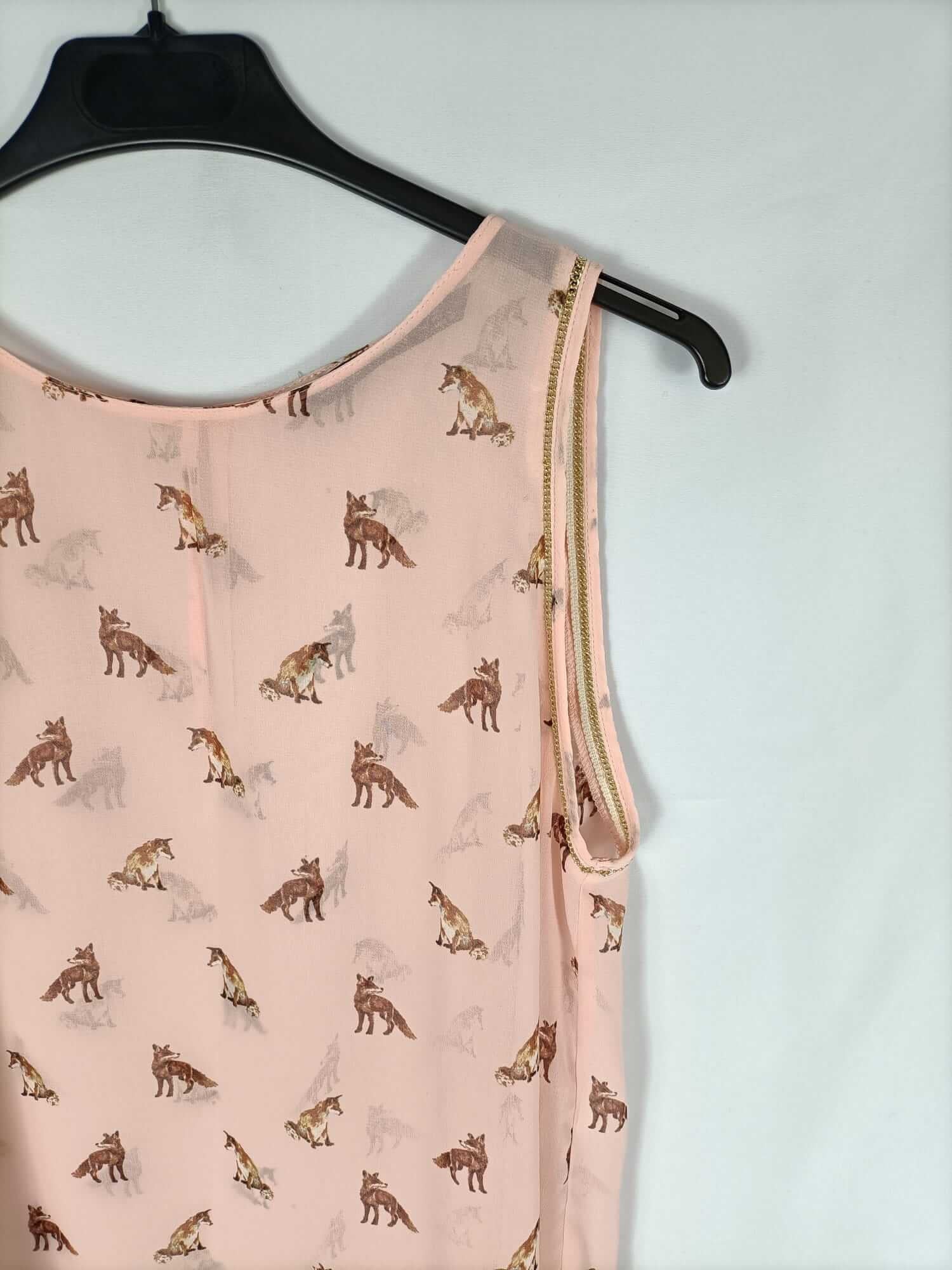 ZARA. Top semitransparente rosa estampado de zorros T.l