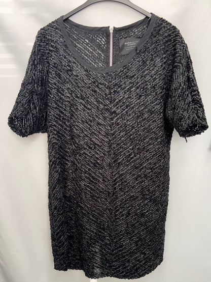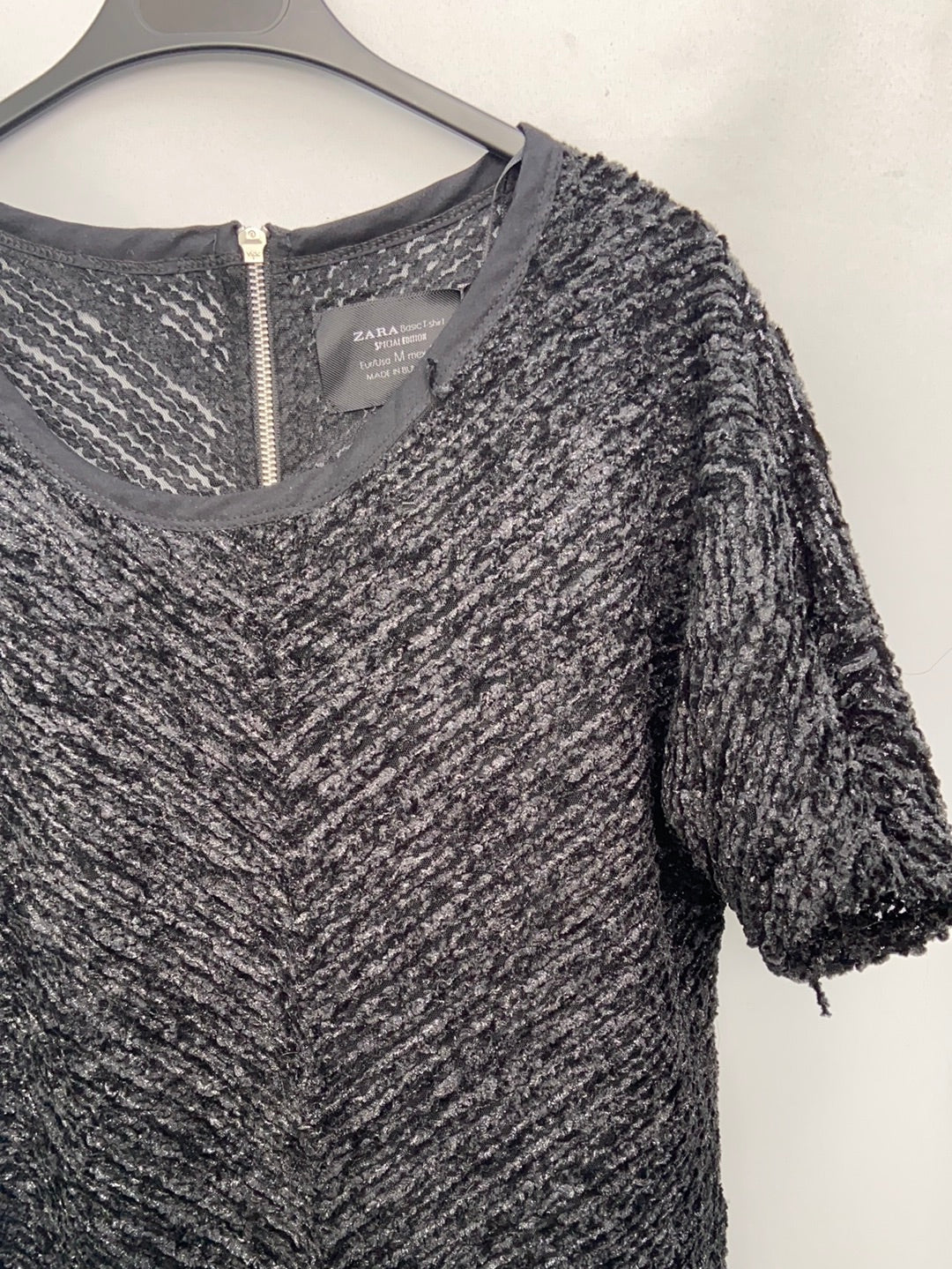 Top/vestido negro de manga corta de Zara con textura. NUEVO CON ETIQUETA