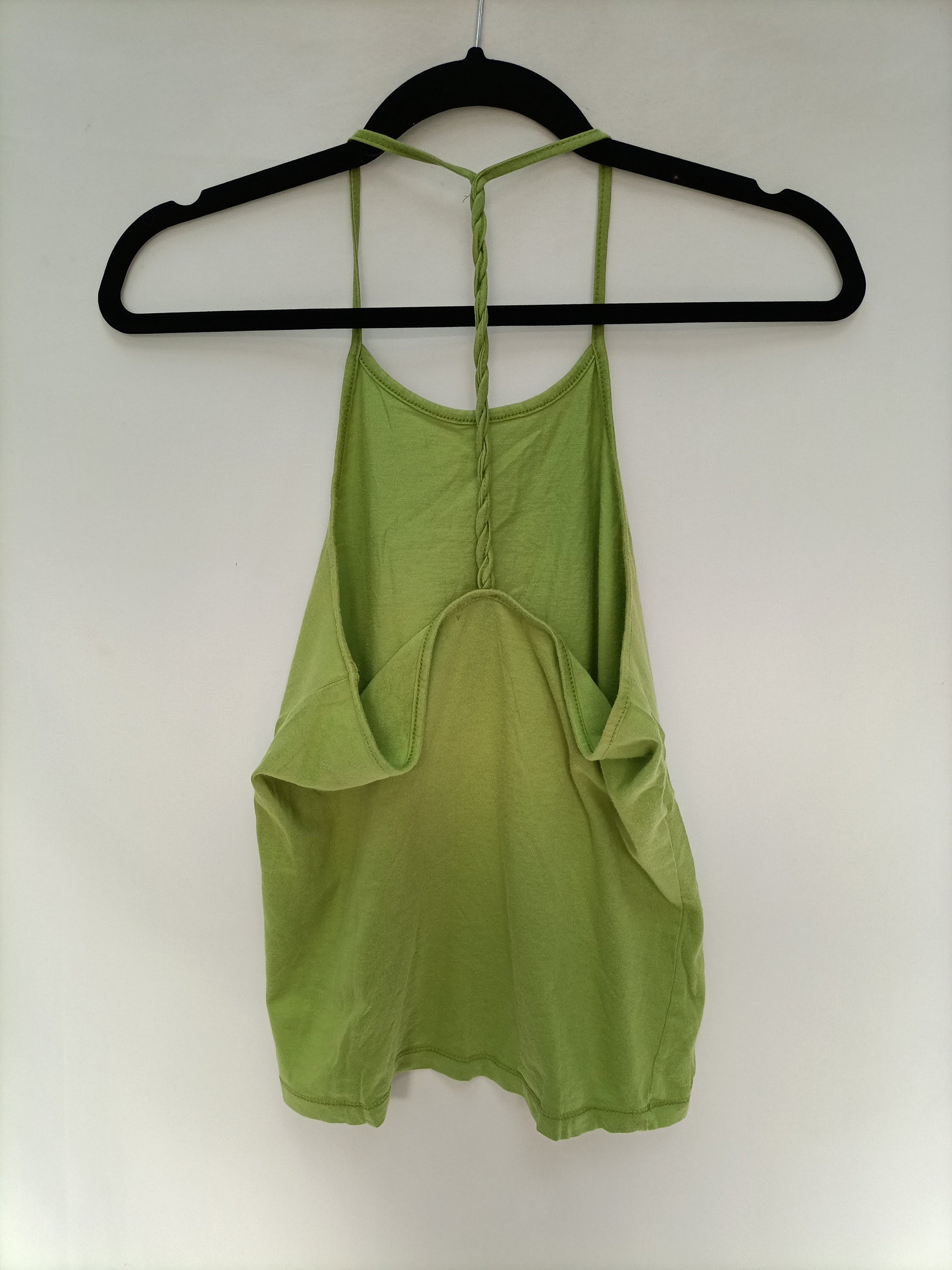 Top verde pistacho de algodón con la espalda baja y trenzada. Elastico. Largo 63 cm