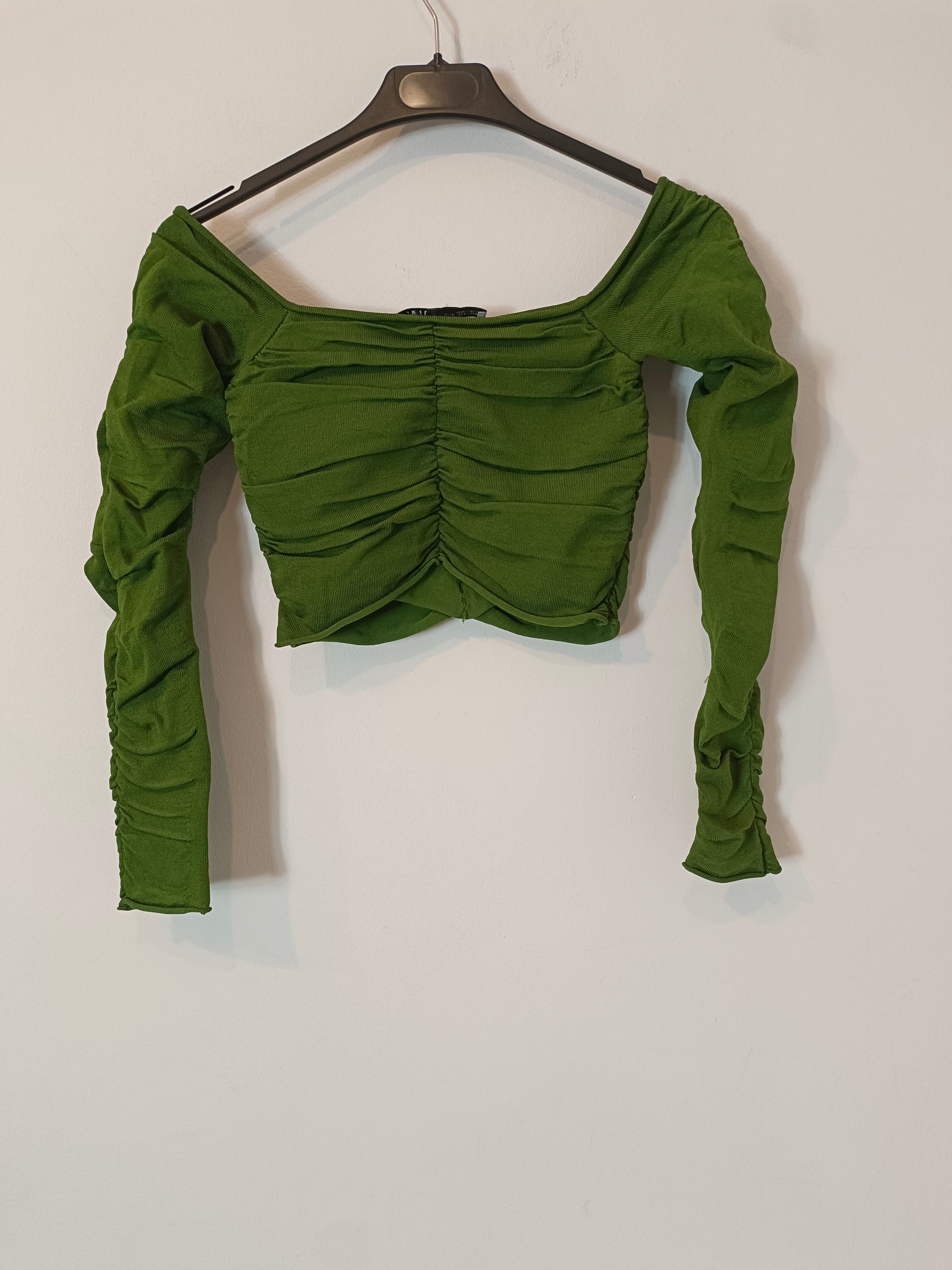 ZARA. Top verde fruncido T.s