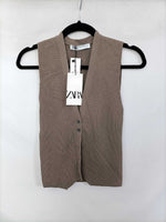 Zara. M. NUEVO CON ETIQUETA. Top/chaleco de punto marrón. Elastico. Largo 56 cm. 22,95 euros