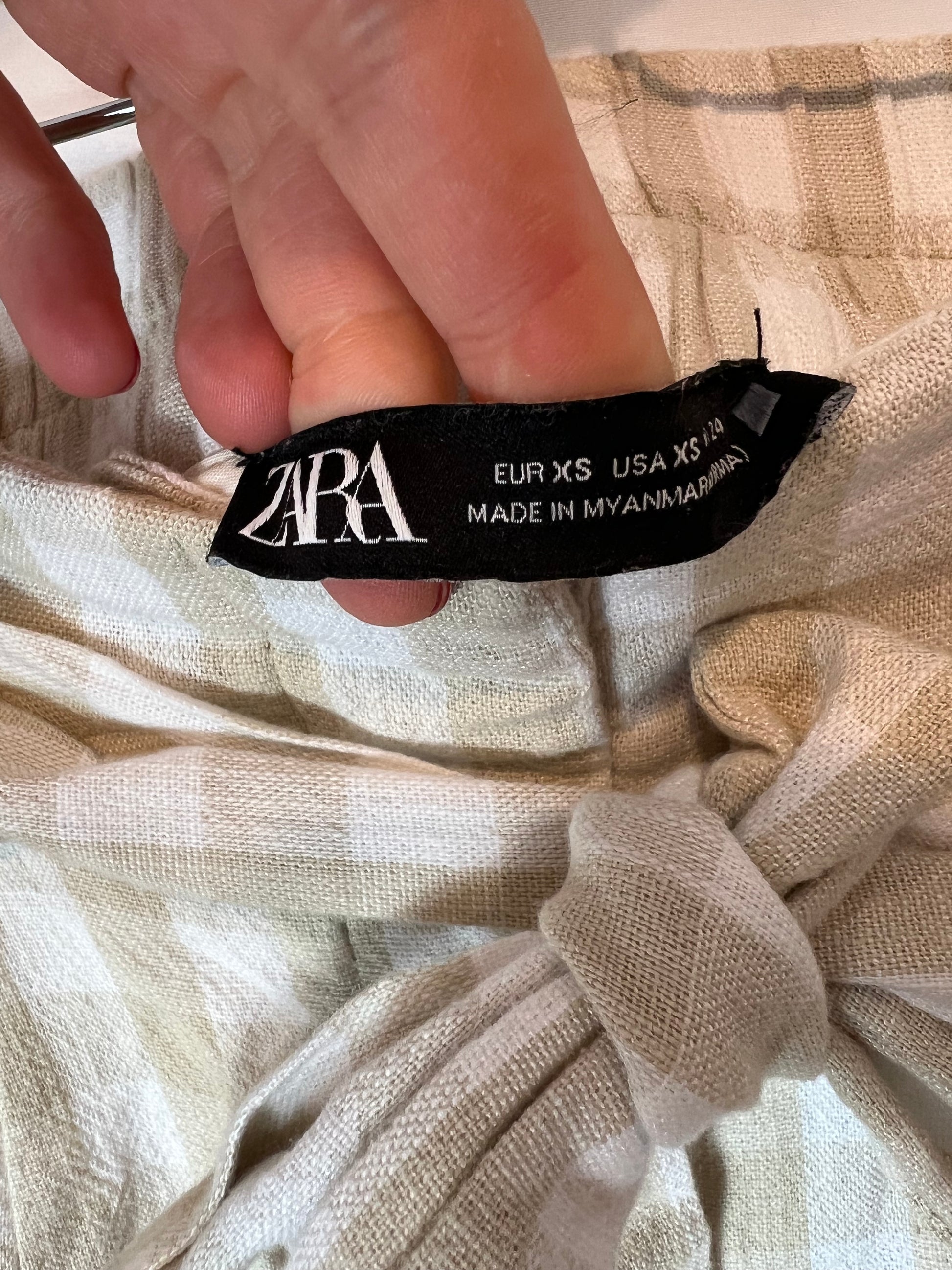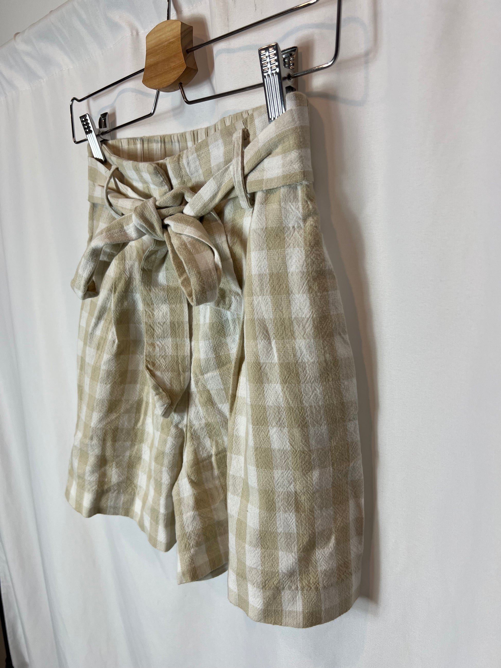 pantalón corto de beige y blanco con lazada . Cibtura 31cm, largo 39cm