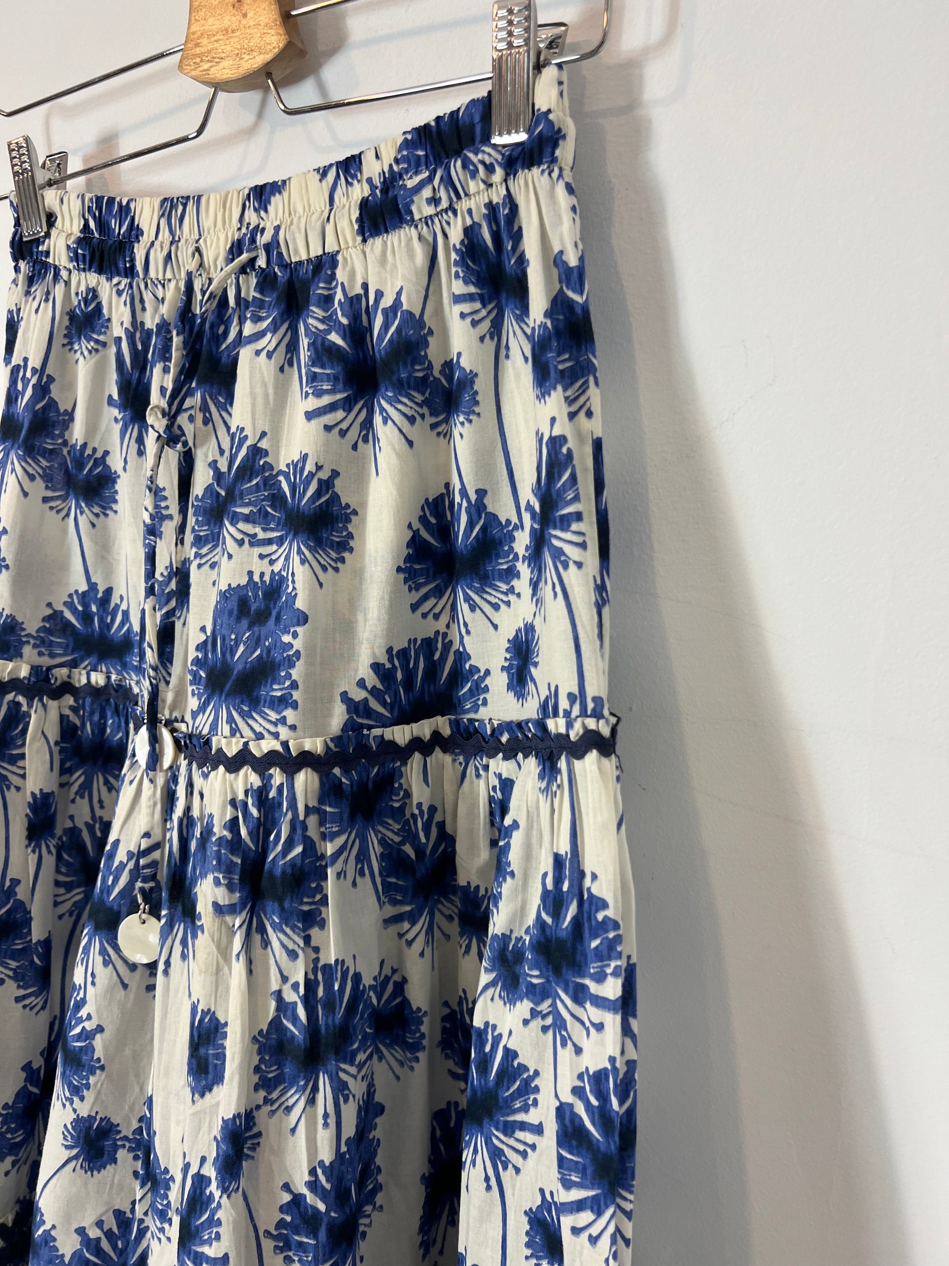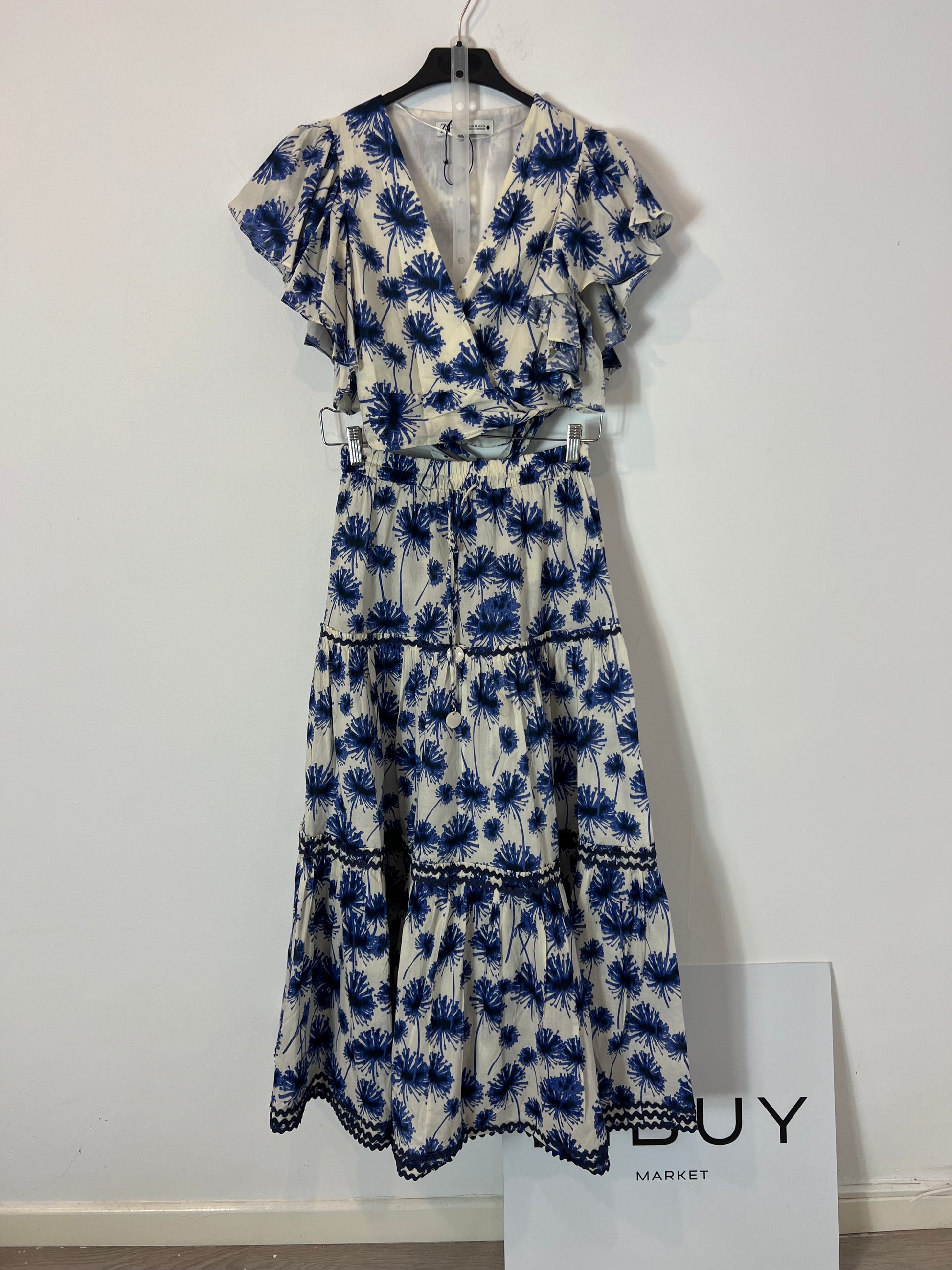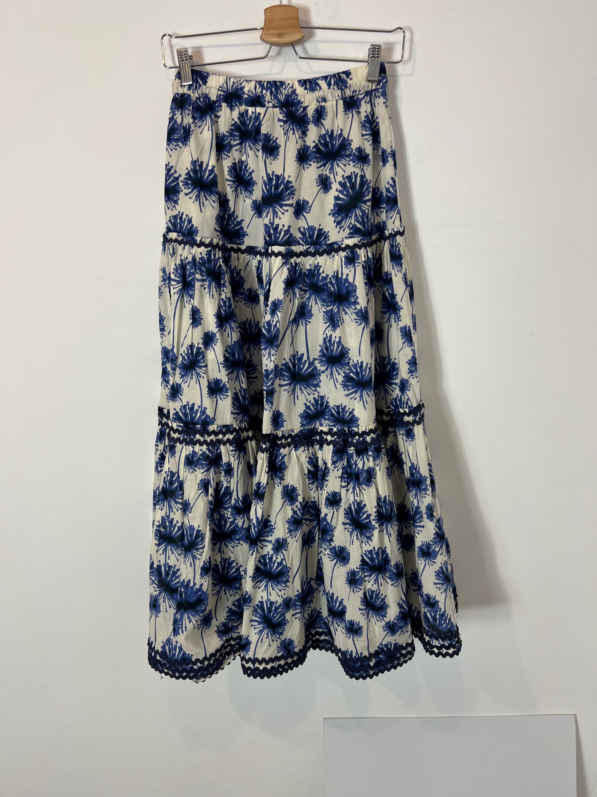 total look con falda larga fluida con cintura elástica y top corto cruzado con lazada . Largo falda 93cm, largo espalda top 39cm