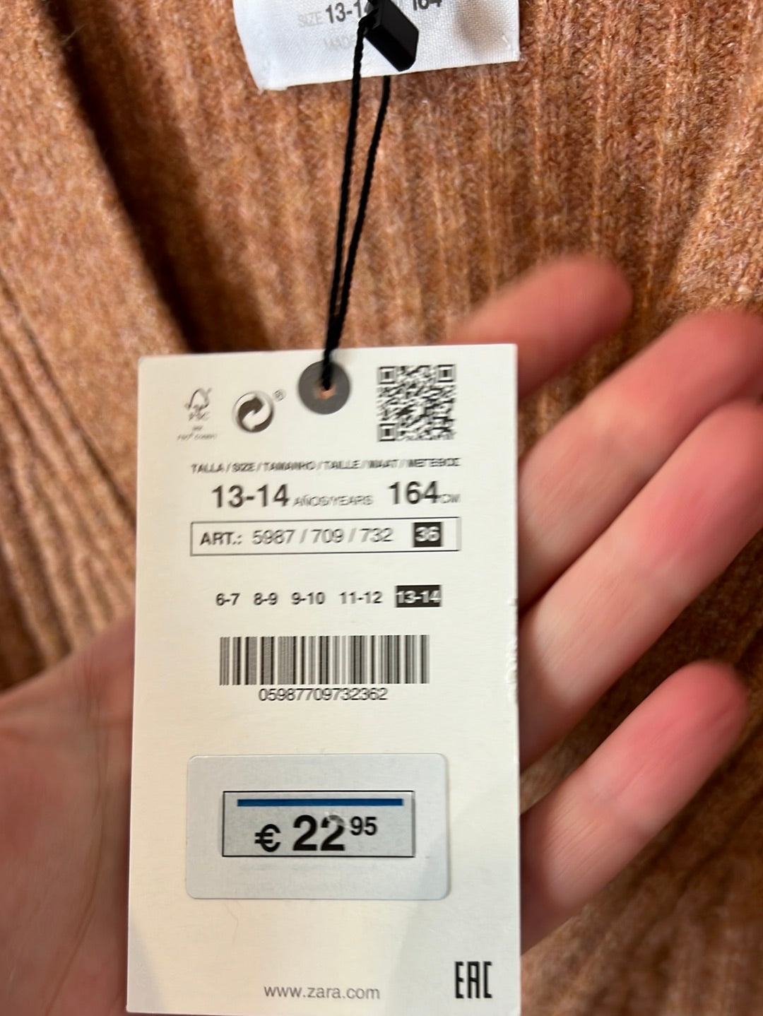 ZARA. Total look teja canalé T.13/14