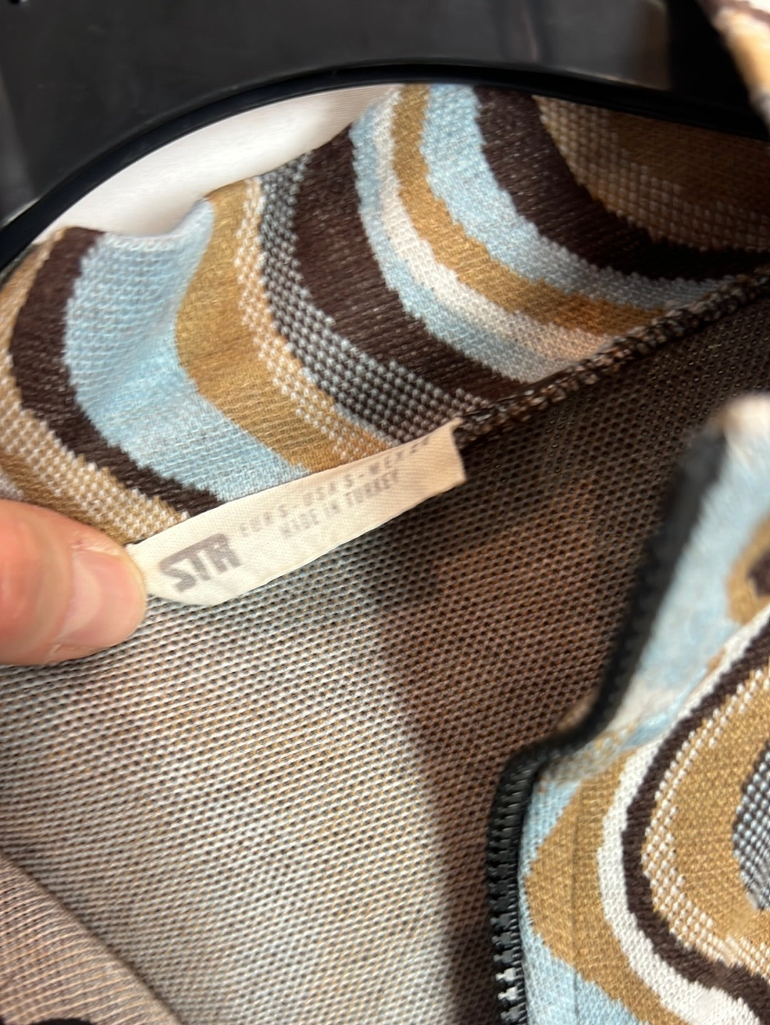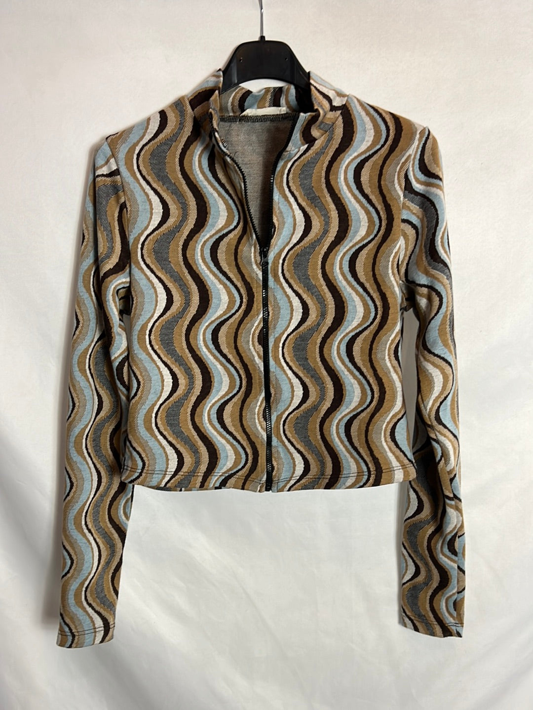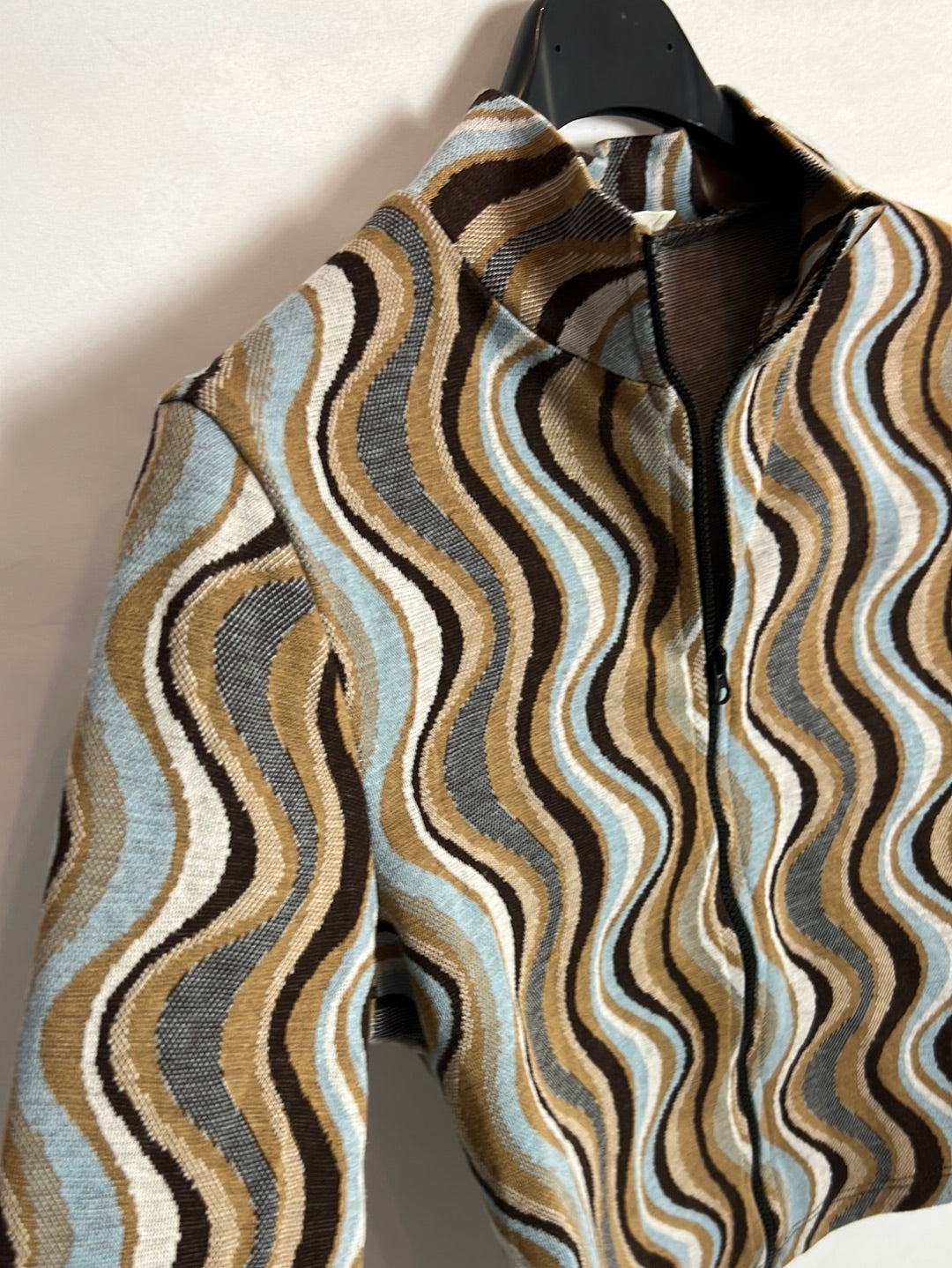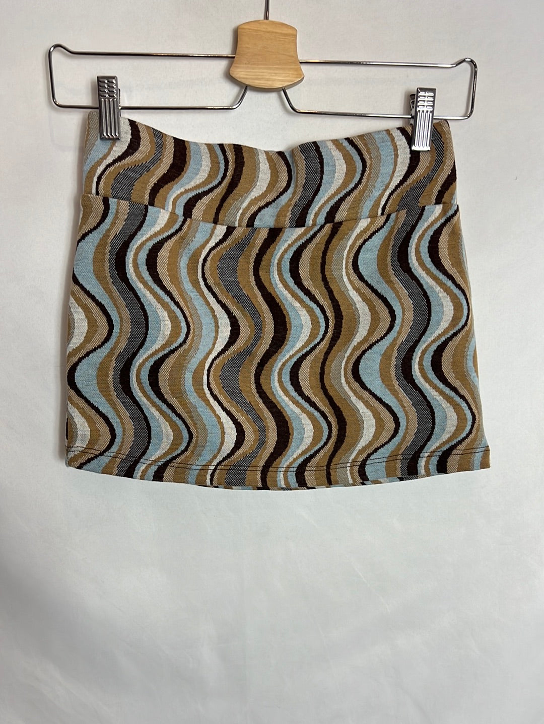 Total look top y falda estampado retro textura punto elástico. Top talla s, falda talla xs. Hombros 36cm, largo 44cm. Falda cintura 33cm , largo 31cm