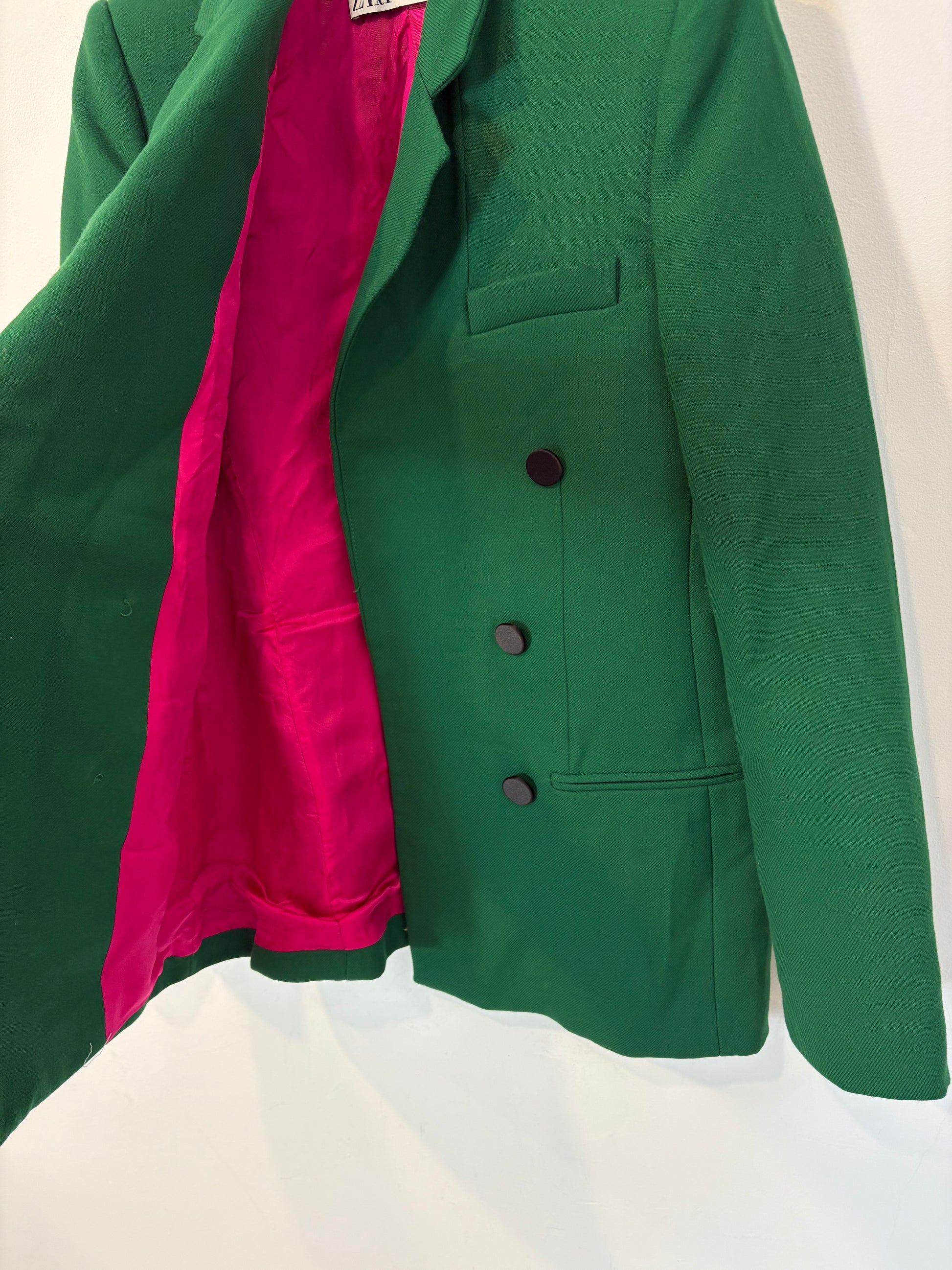 ZARA. Traje de chaqueta verde doble botonadura