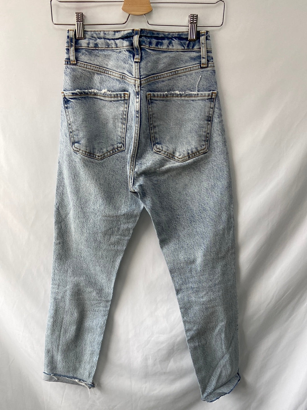 Pantalón vaquero efecto desgastado. Elástico . cintura 32 cm largo 96 cm