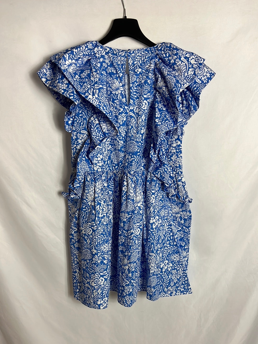 NUEVO CON ETIQUETA. Vestido corto azul con flores blancas