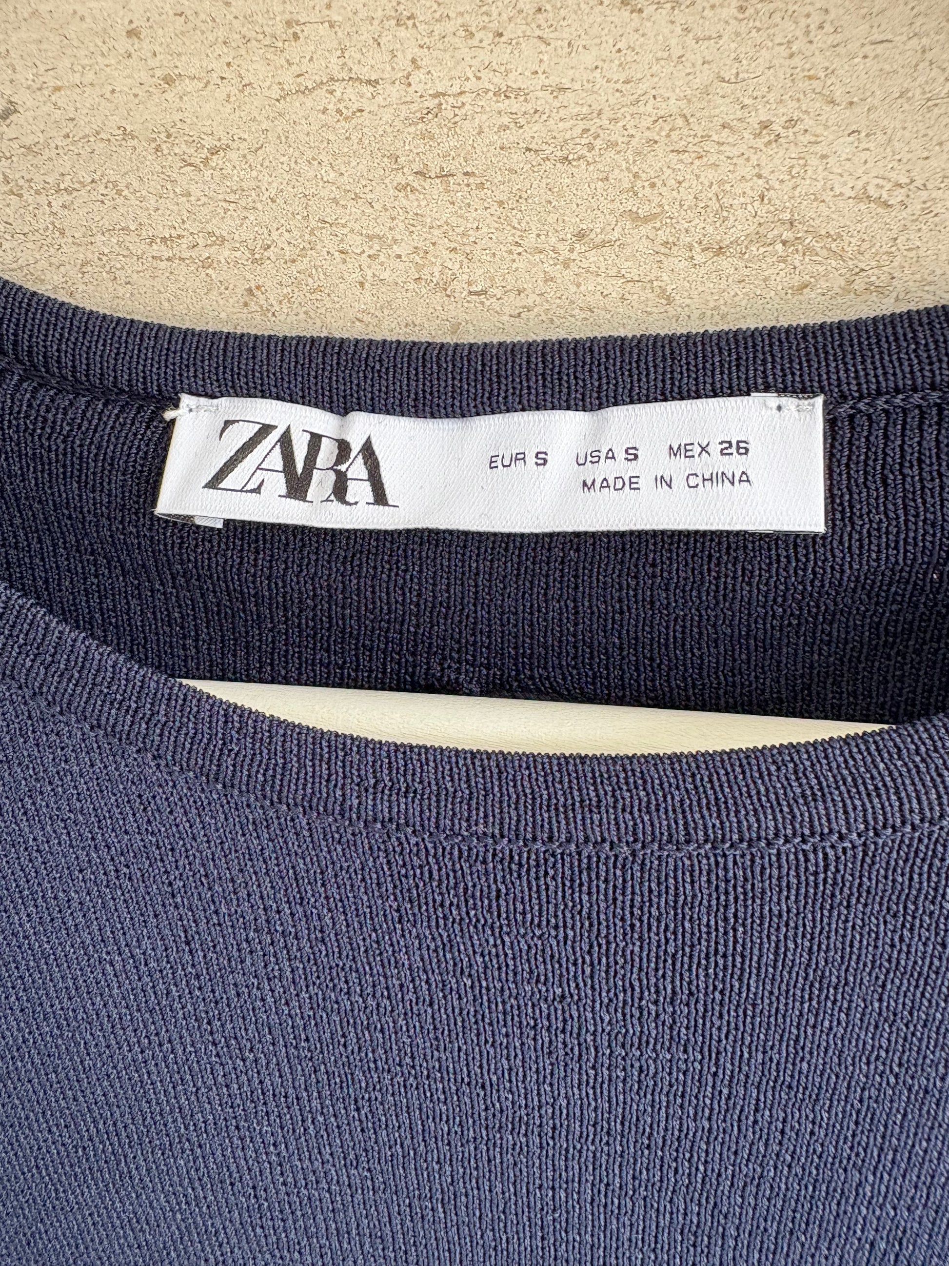 ZARA. Vestido azul mangas efecto capa. T S