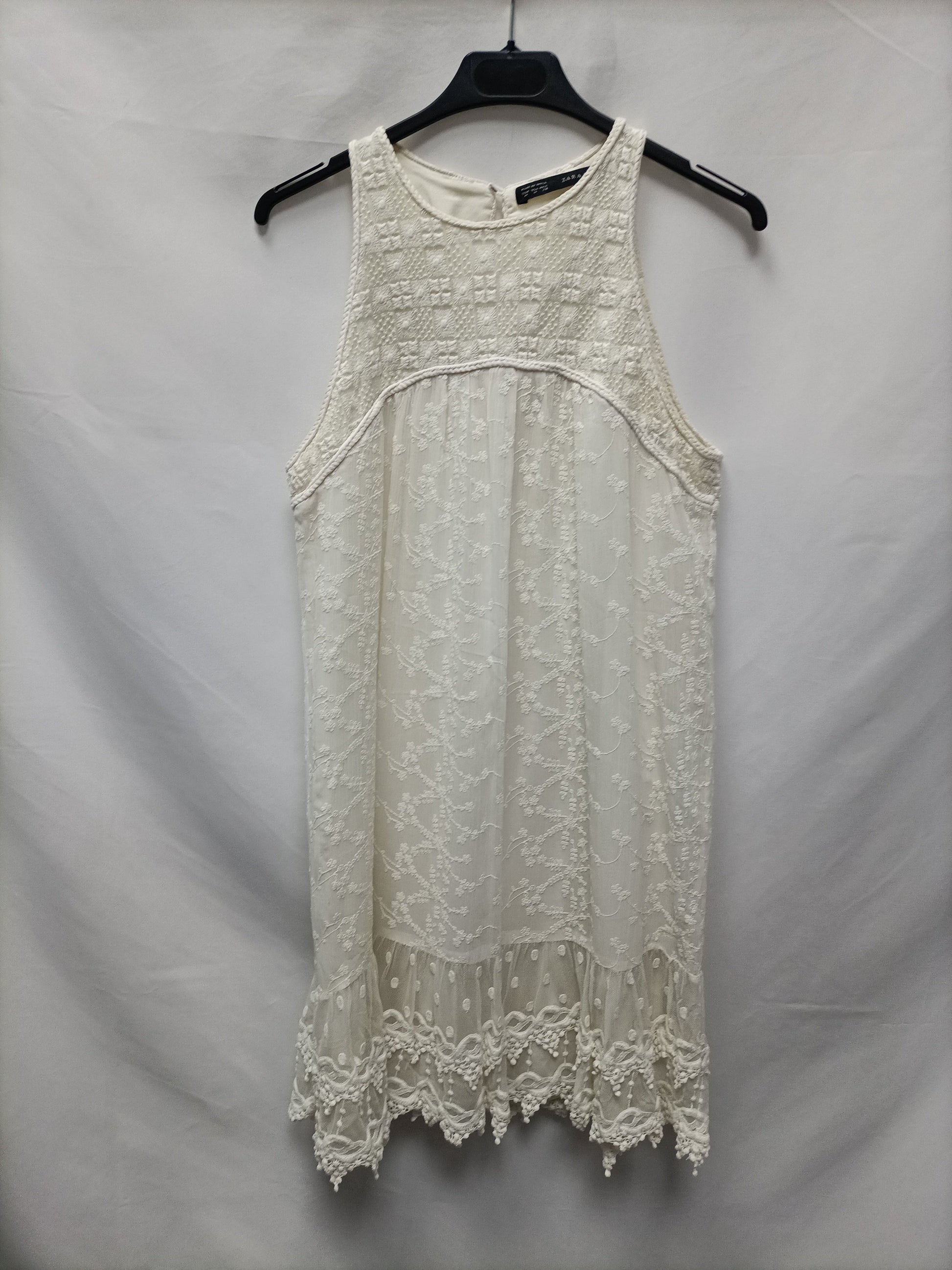 ZARA. Vestido beige encaje T.m