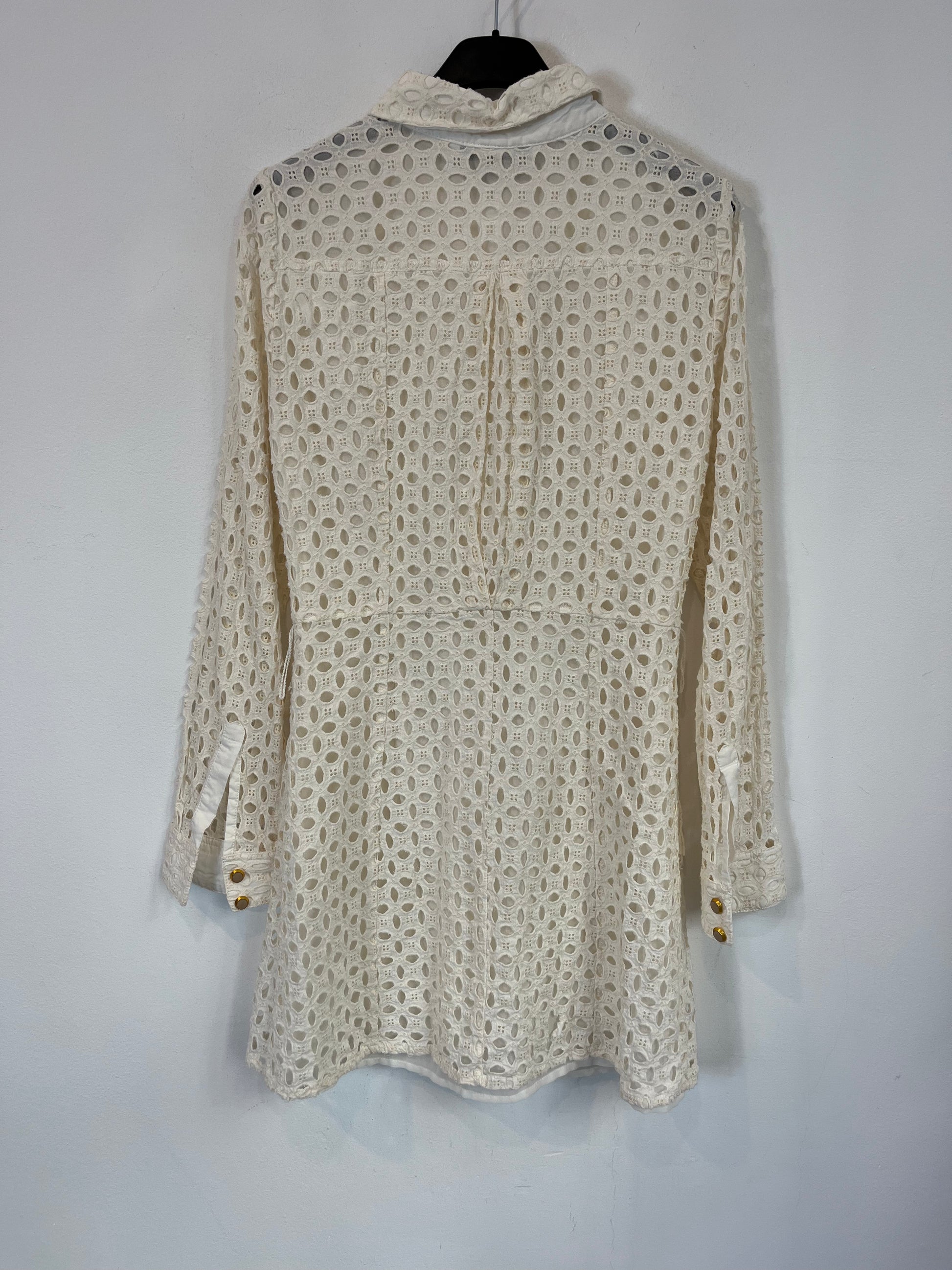 ZARA. Vestido beige troquelado T.xs