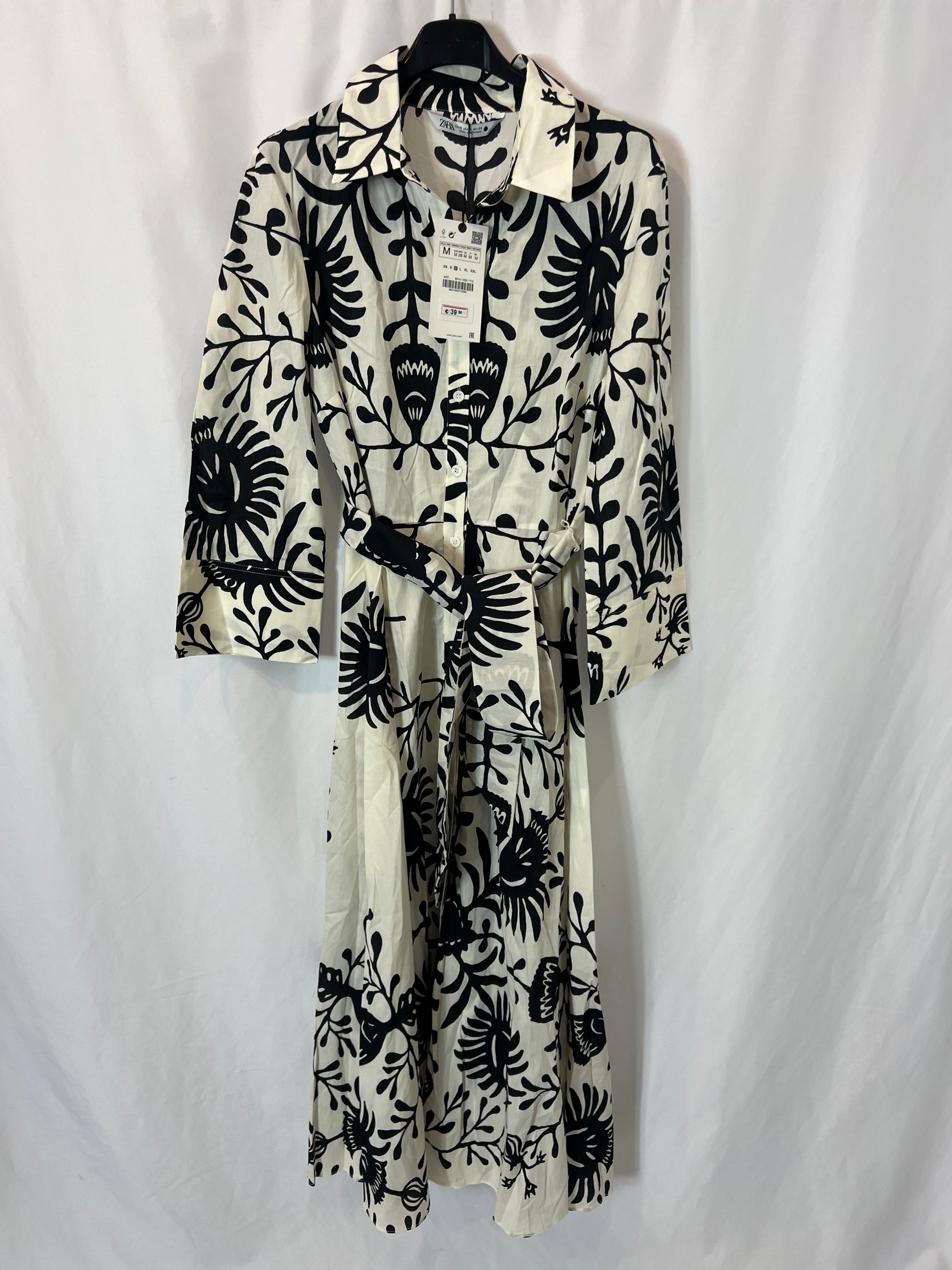 NUEVO CON ETIQUETA. Vestido largo estilo camisero abotonado estampado con cinturón de lazada