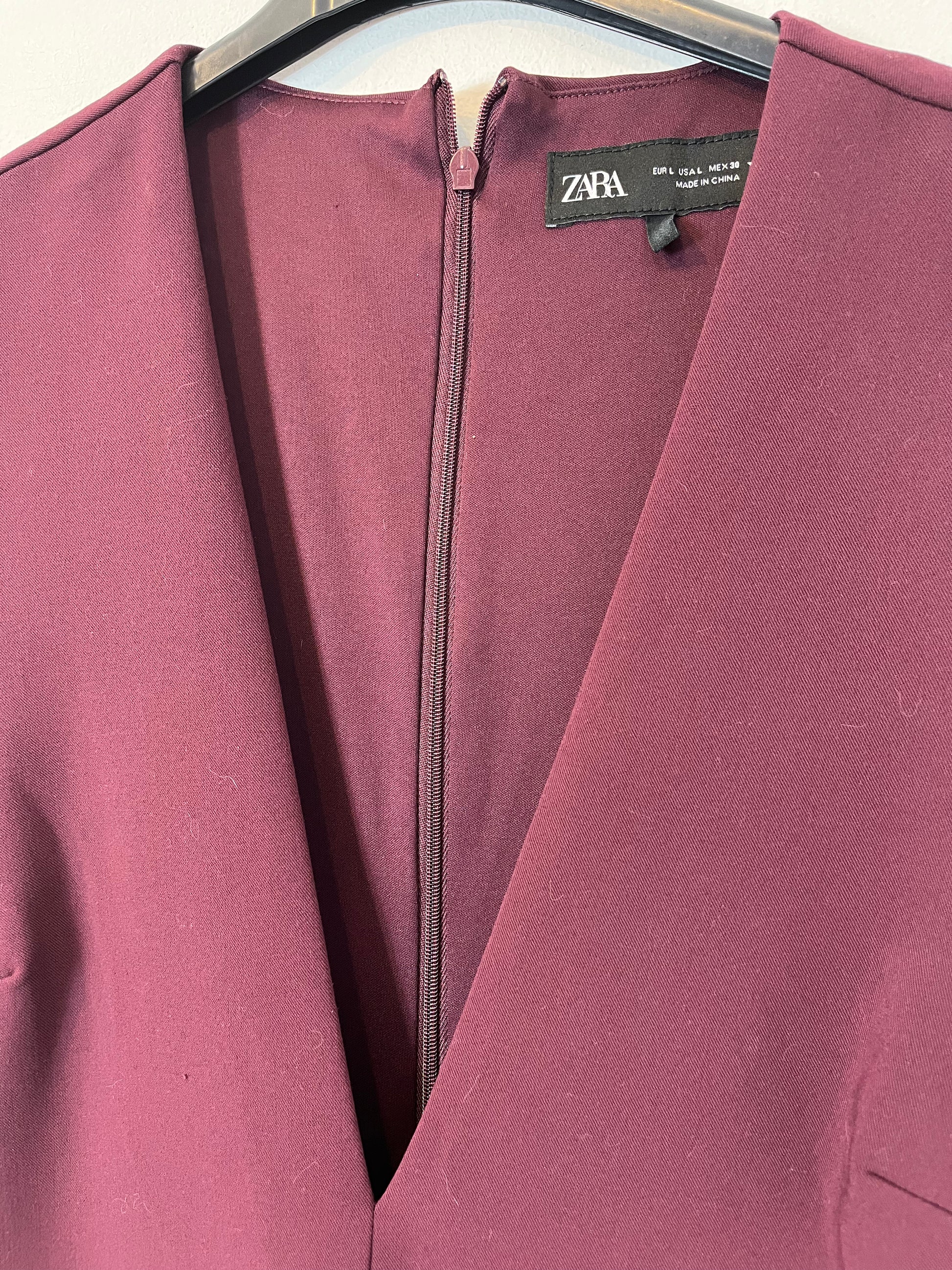 ZARA. Vestido burdeos tablas. T L