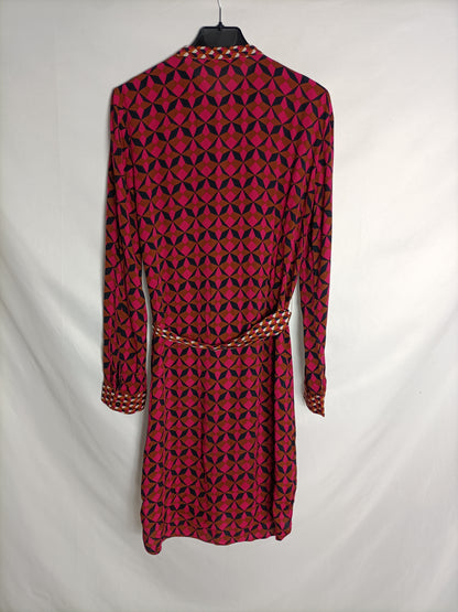 ZARA. Vestido camisero estampado rosa y negro. T S