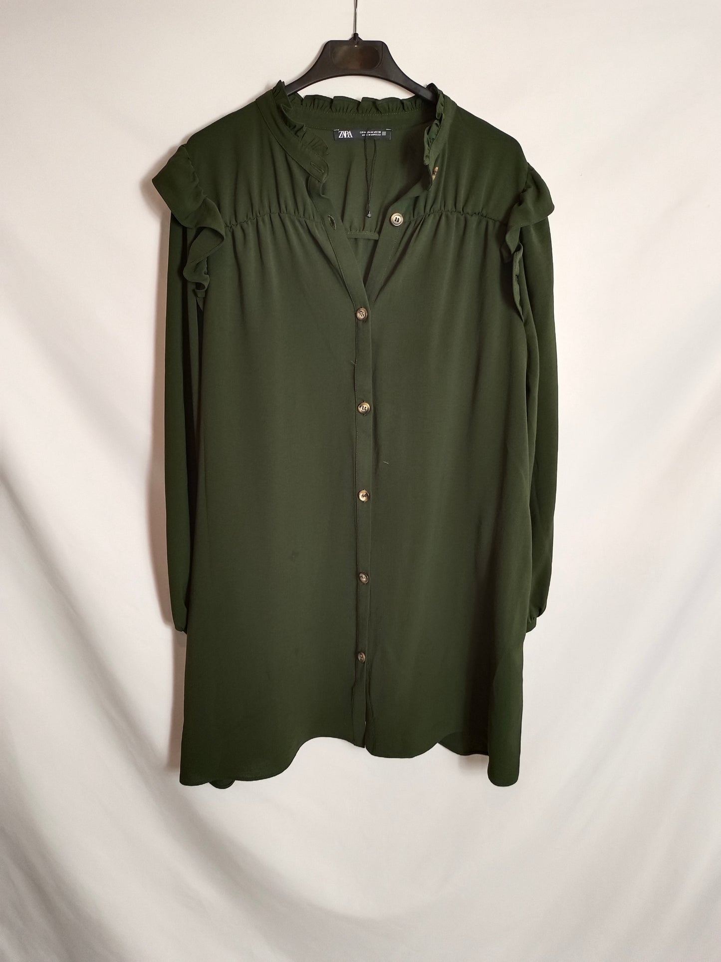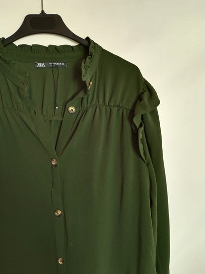 ZARA. Vestido camisero verde T.m