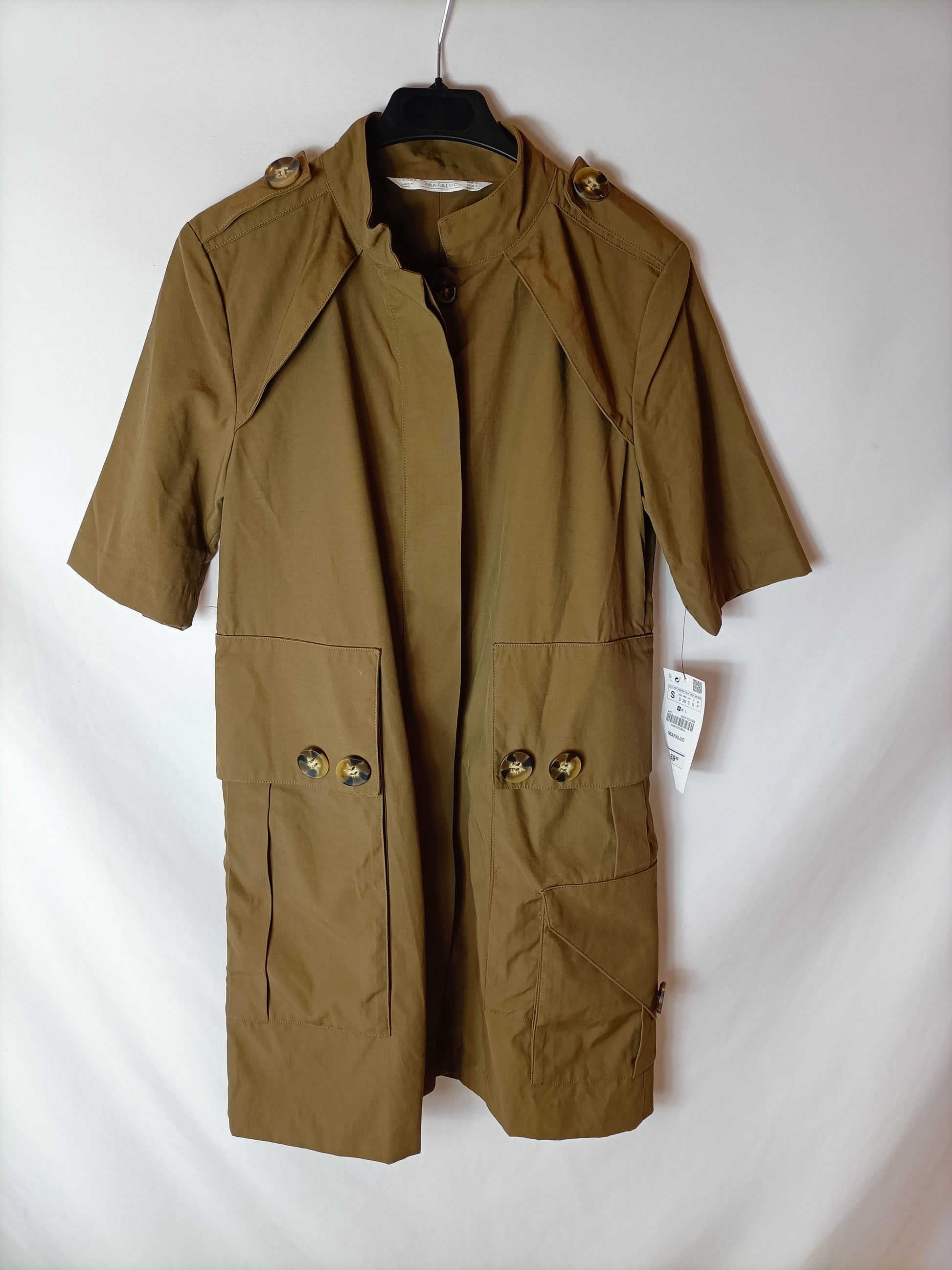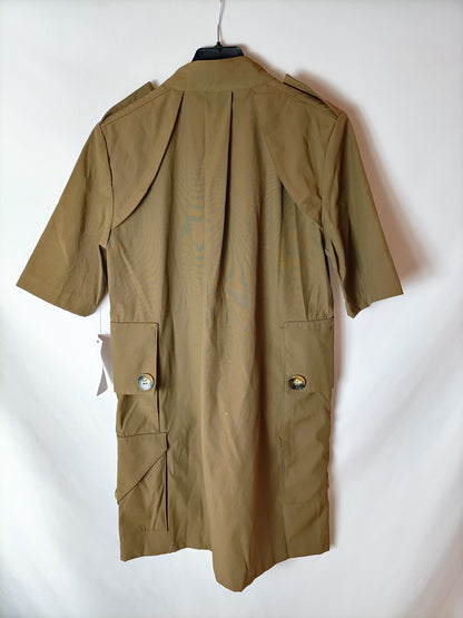 NUEVO CON ETIQUETA. Vestido corto/ chaqueta verde estilo sahariano. se cierra por delante con cremallera.
