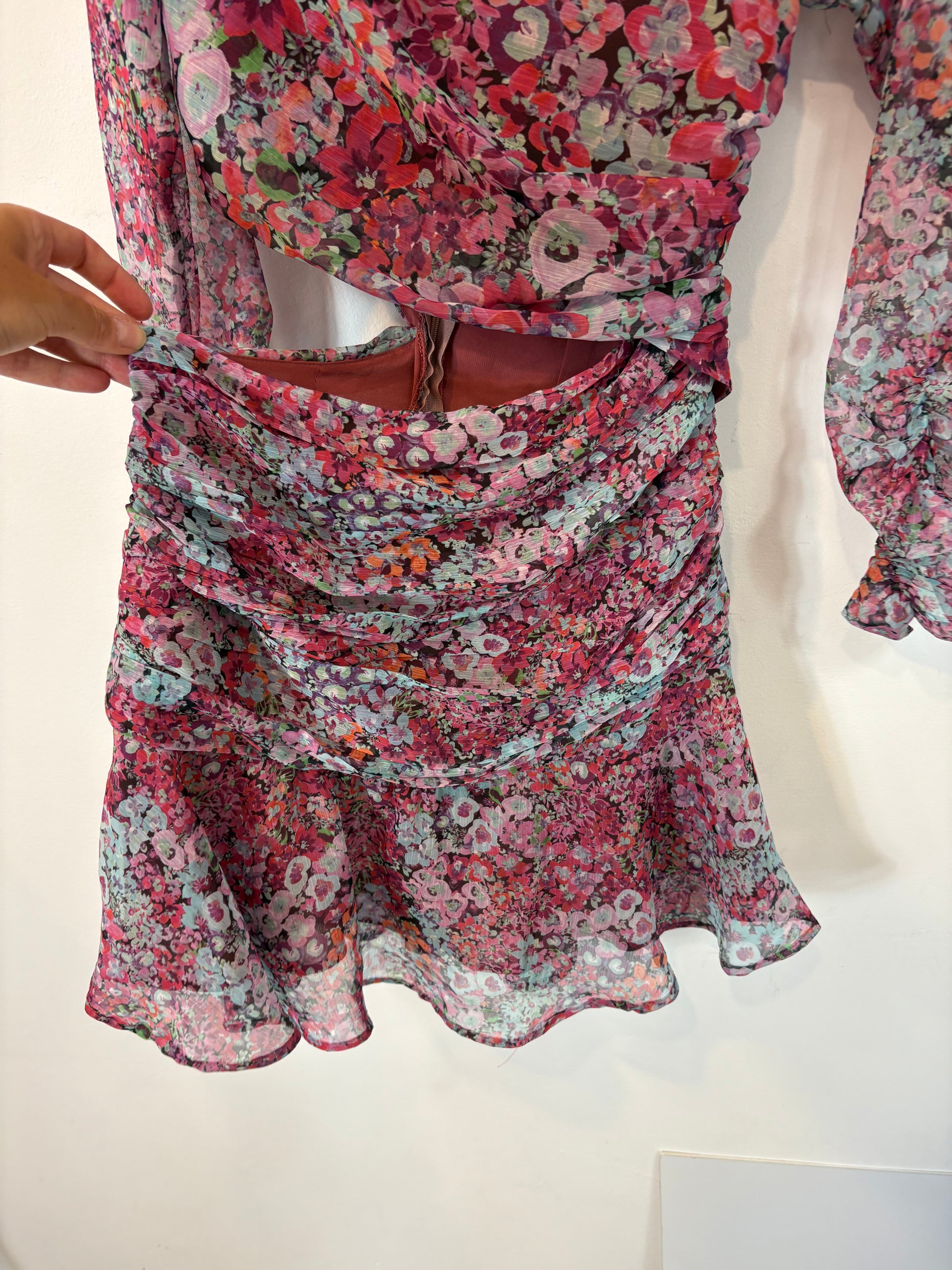 ZARA. Vestido corto abertura flores. T XS