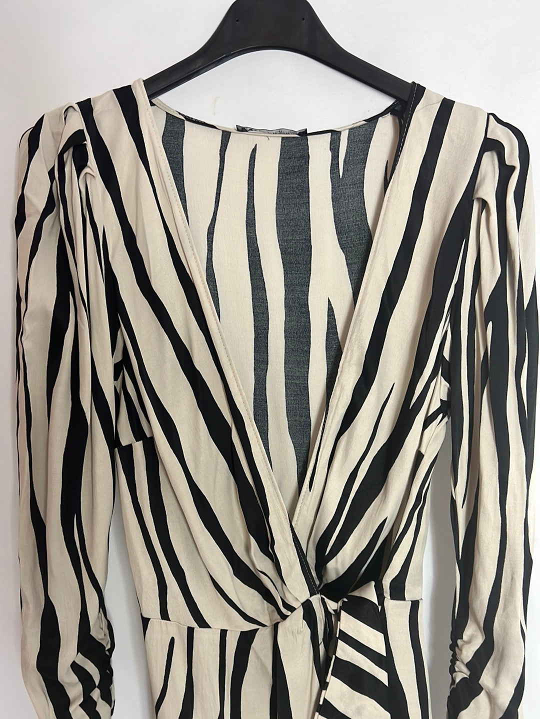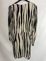 ZARA. Vestido corto beige y negro cruzado. T XS