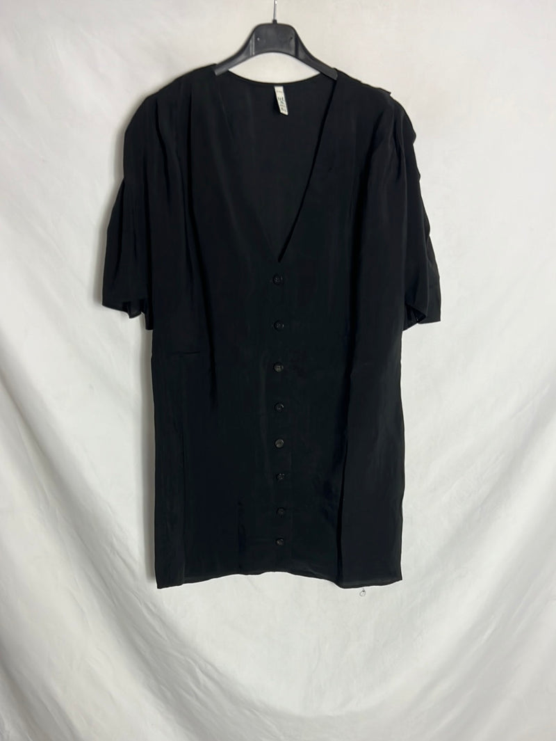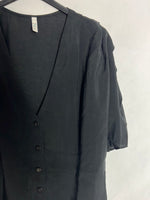 Vestido corto camisero azul oscuro detalle mangas volantes. Largo 80cm y de sisa a sisa 48cm. Talla como una M