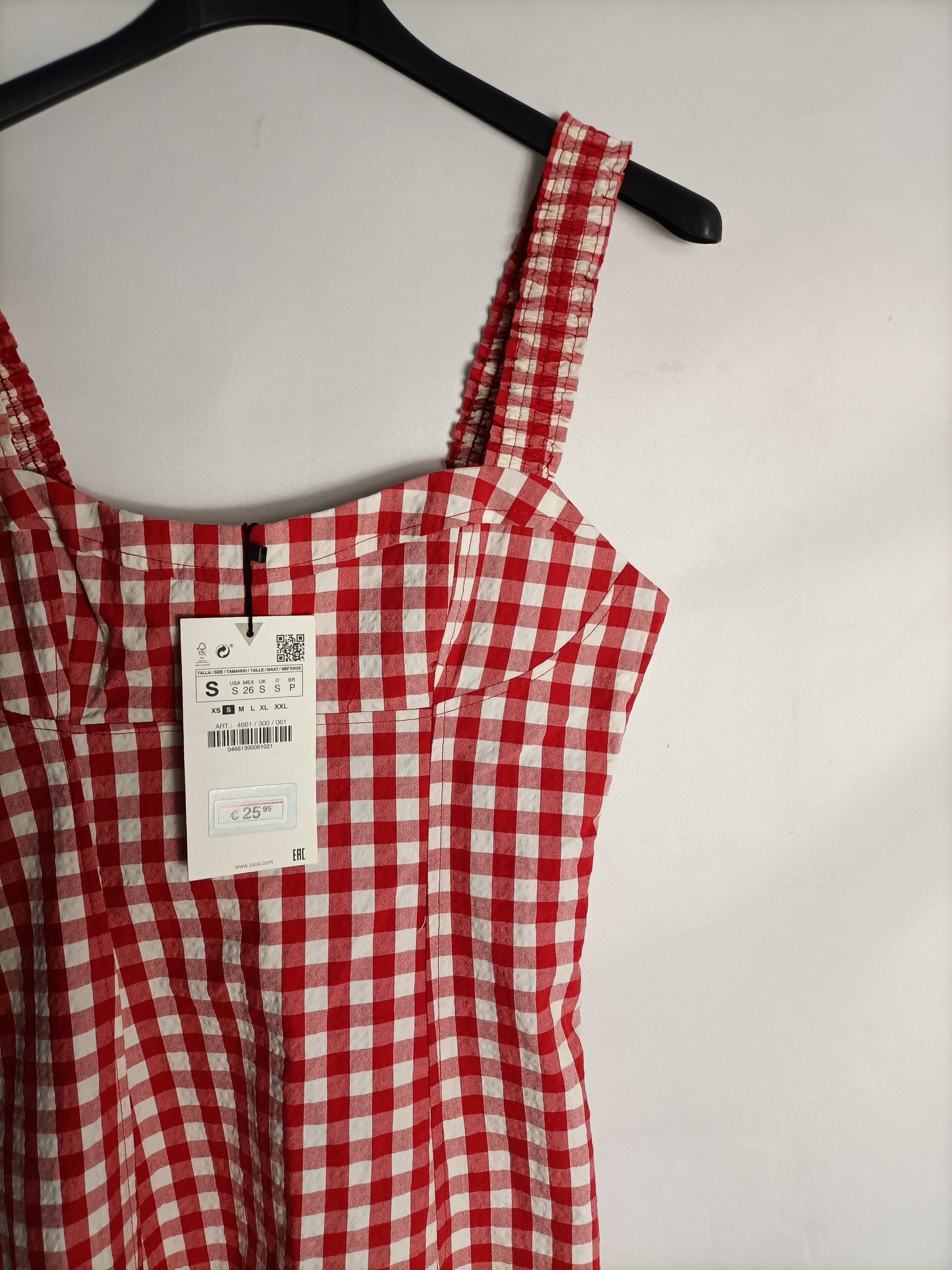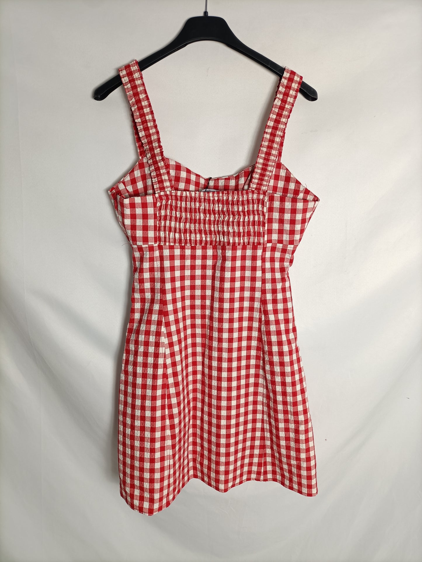 ZARA. Vestido corto cuadros vichy rojos. T S