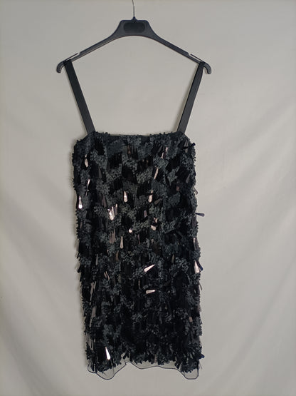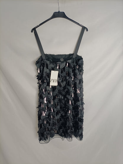 NUEVO CON ETIQUETA. vestido corto verde de sEda con escote halter