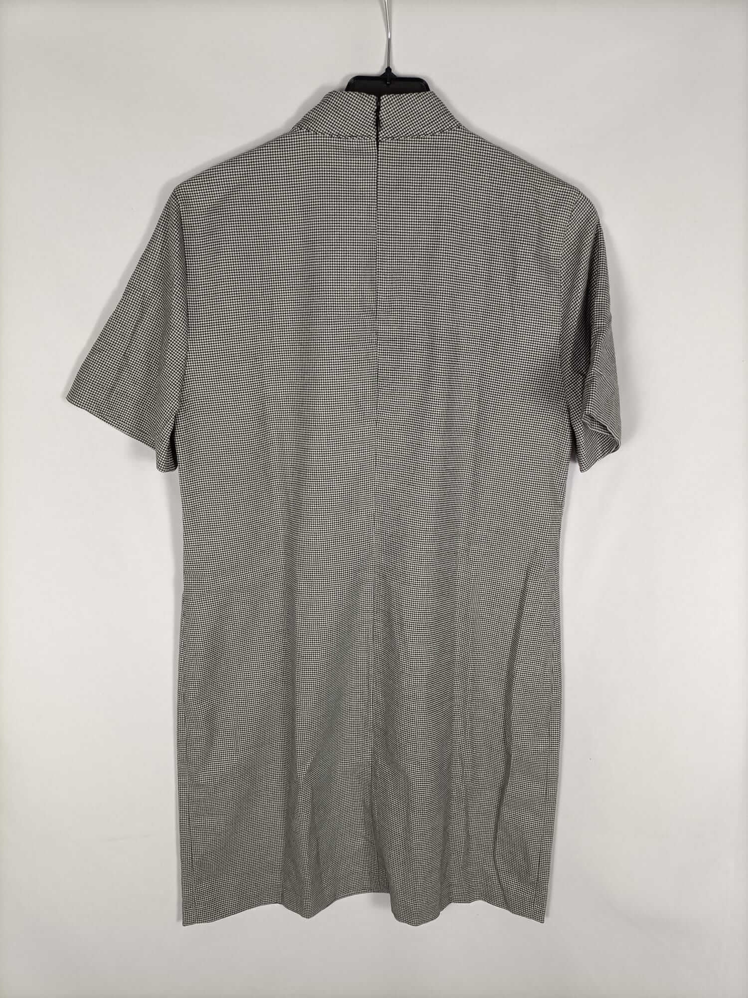 Zara.s. NUEVO CON ETIQUETA. Vestido corto negro de pata de gallo con escote en pico y choquer. No elástico. De sisa a sisa 48 cm largo 91 cm. 29,95