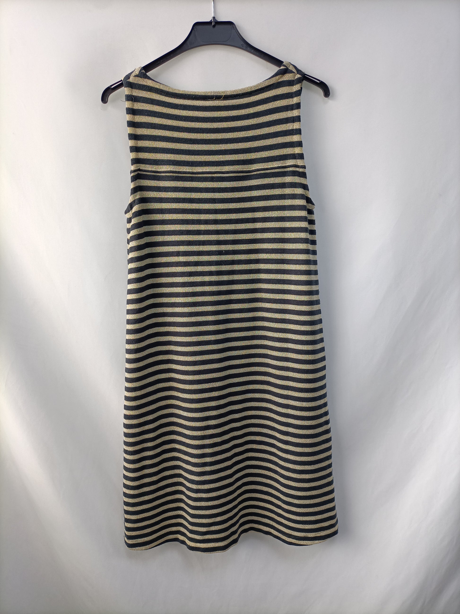 Vestido corto de rayas negra y doradas con detalle de hilos dorados. largo 85 cm