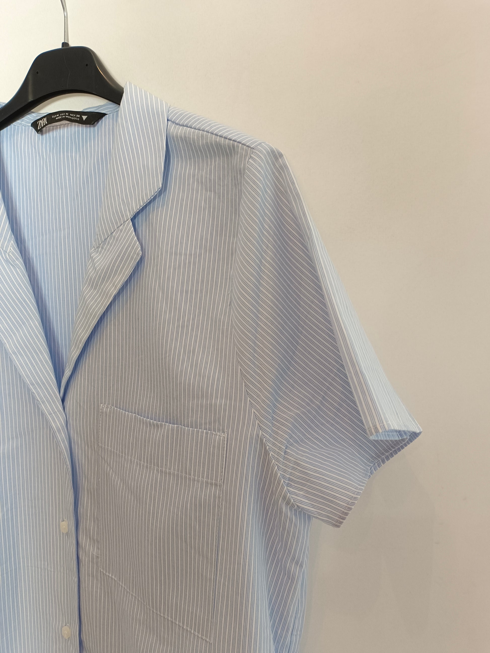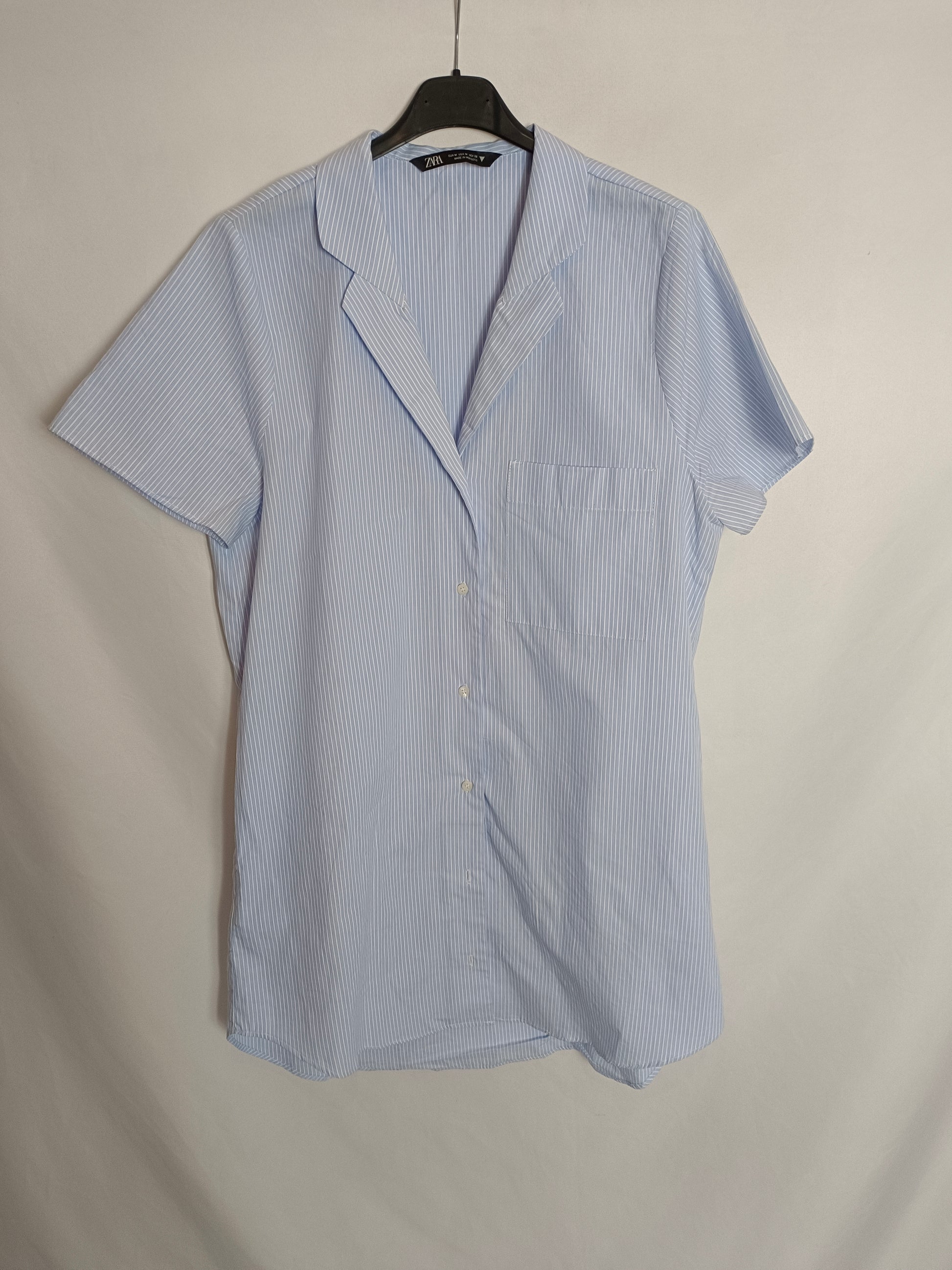 vestido corto estilo camisero de rayas blanco y azul. de sisa a sisa 56 cm largo 82 cm