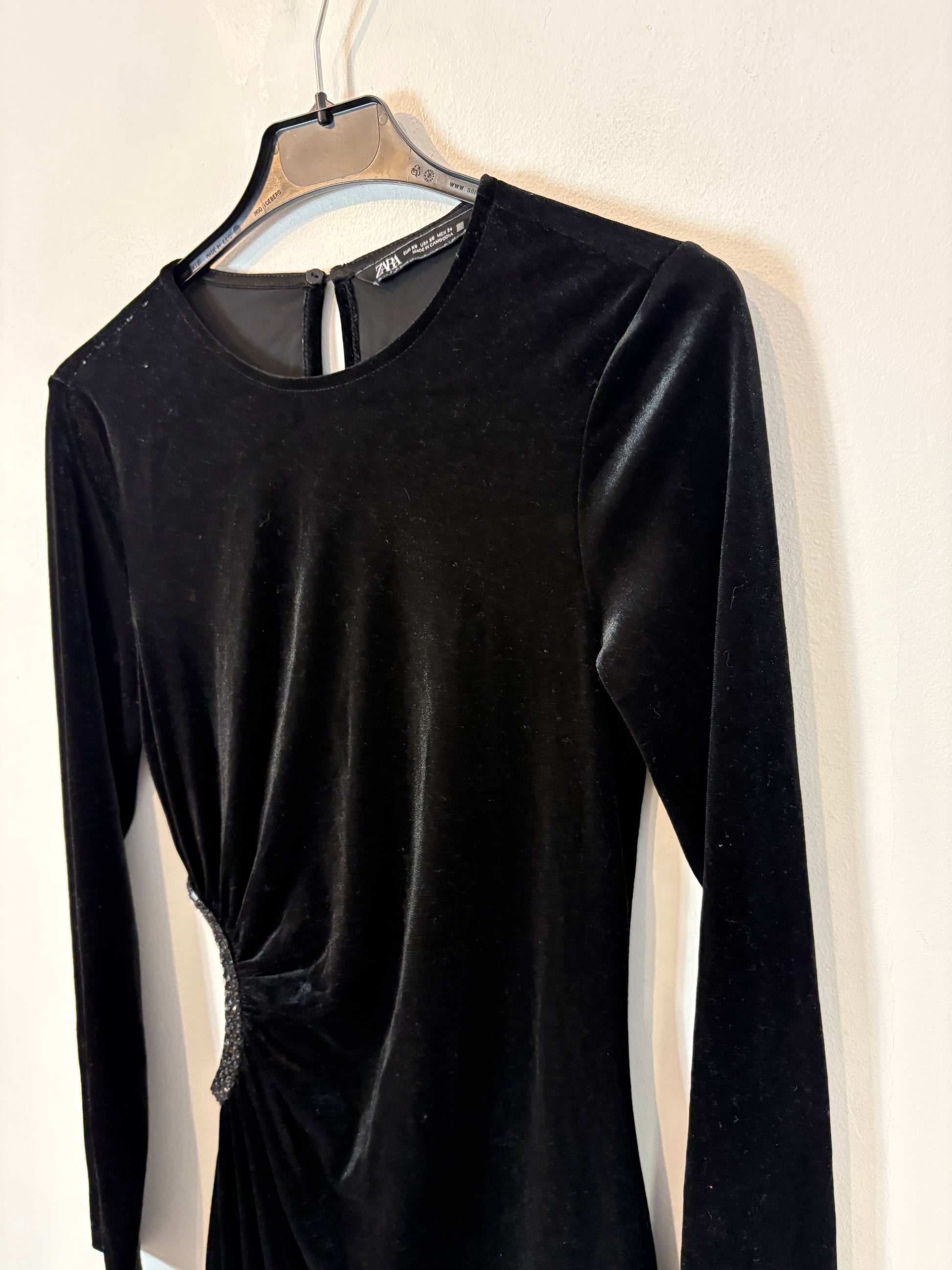ZARA. Vestido corto terciopelo abertura