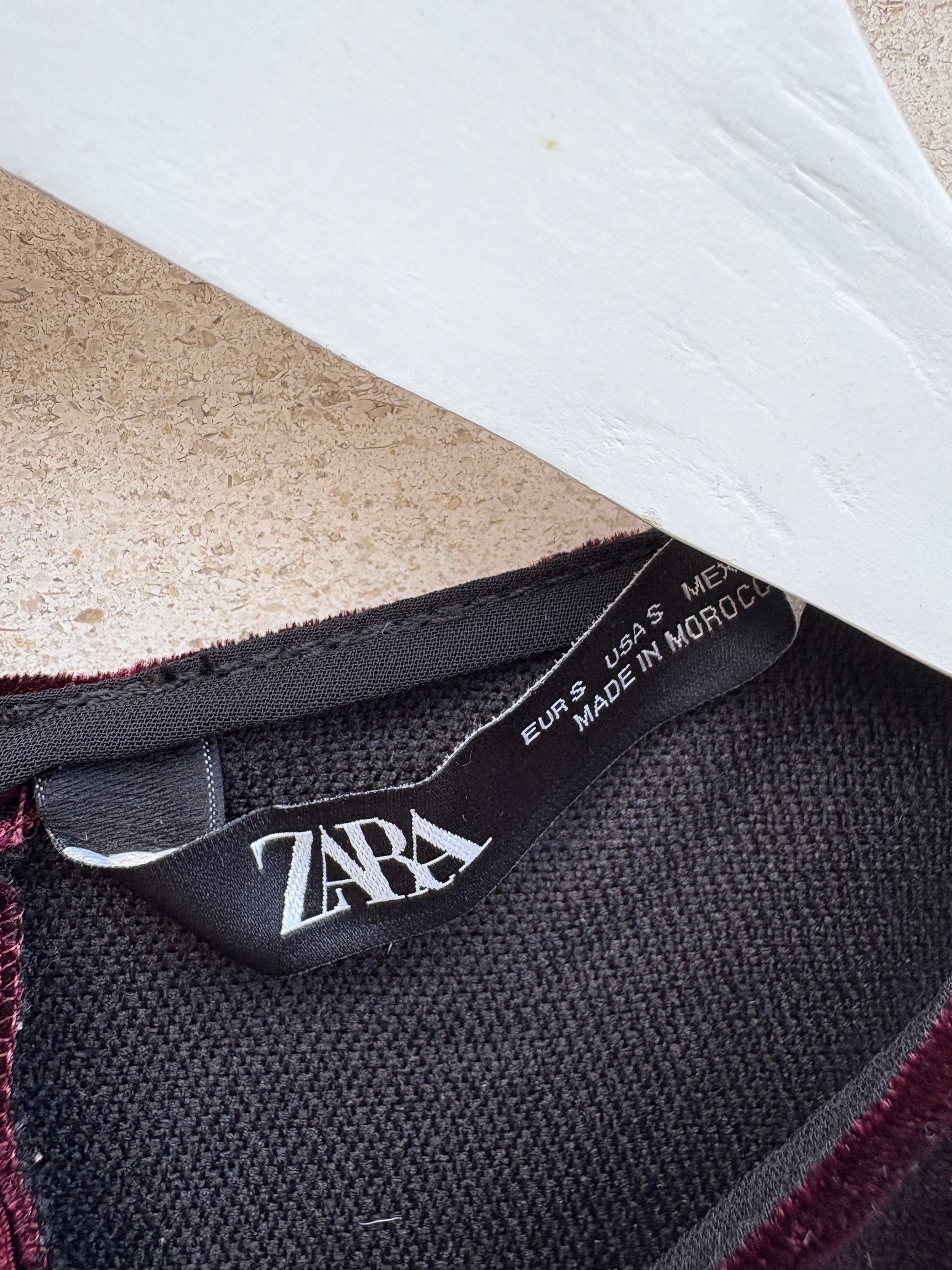 ZARA. Vestido corto terciopelo burdeos