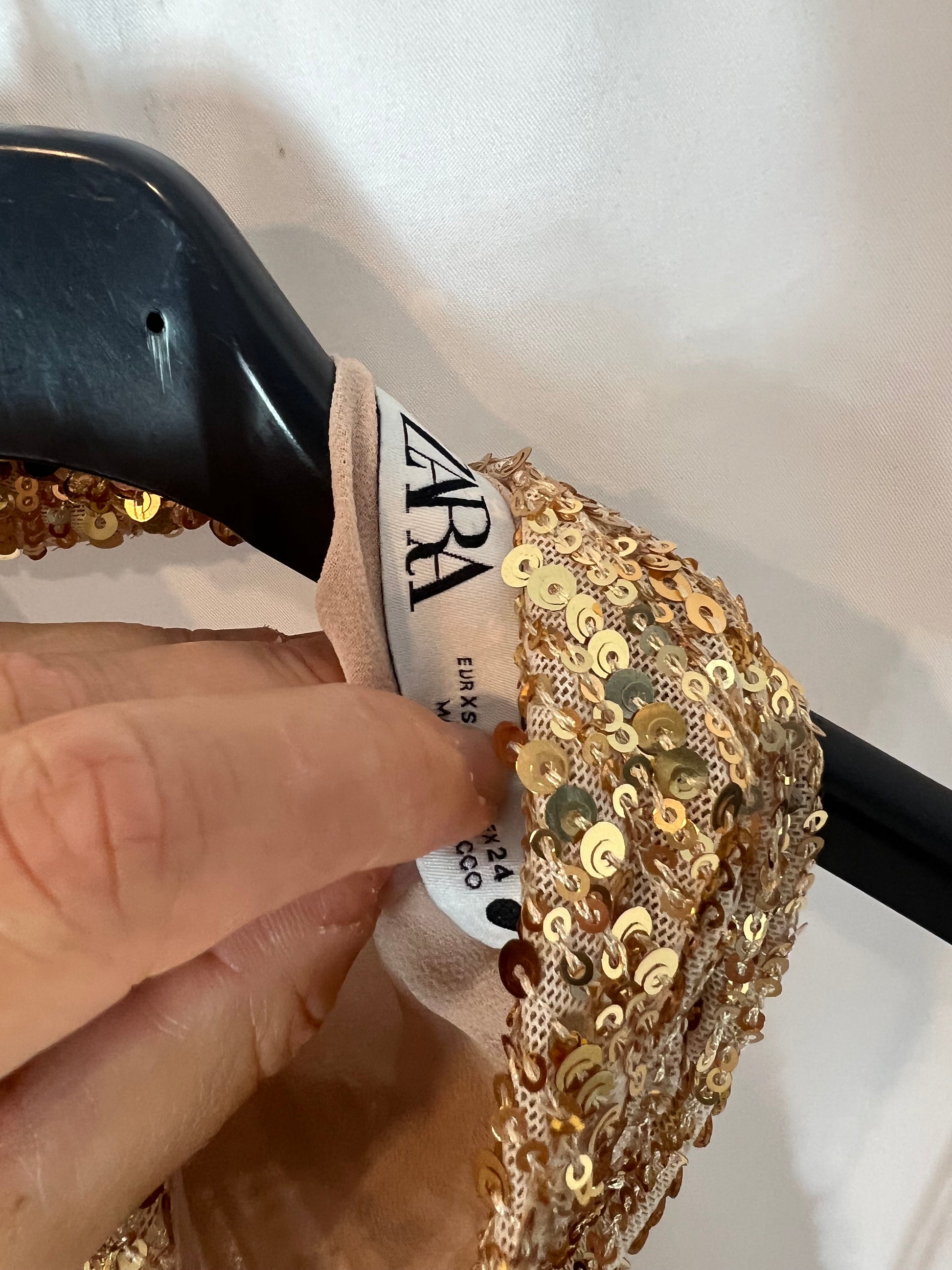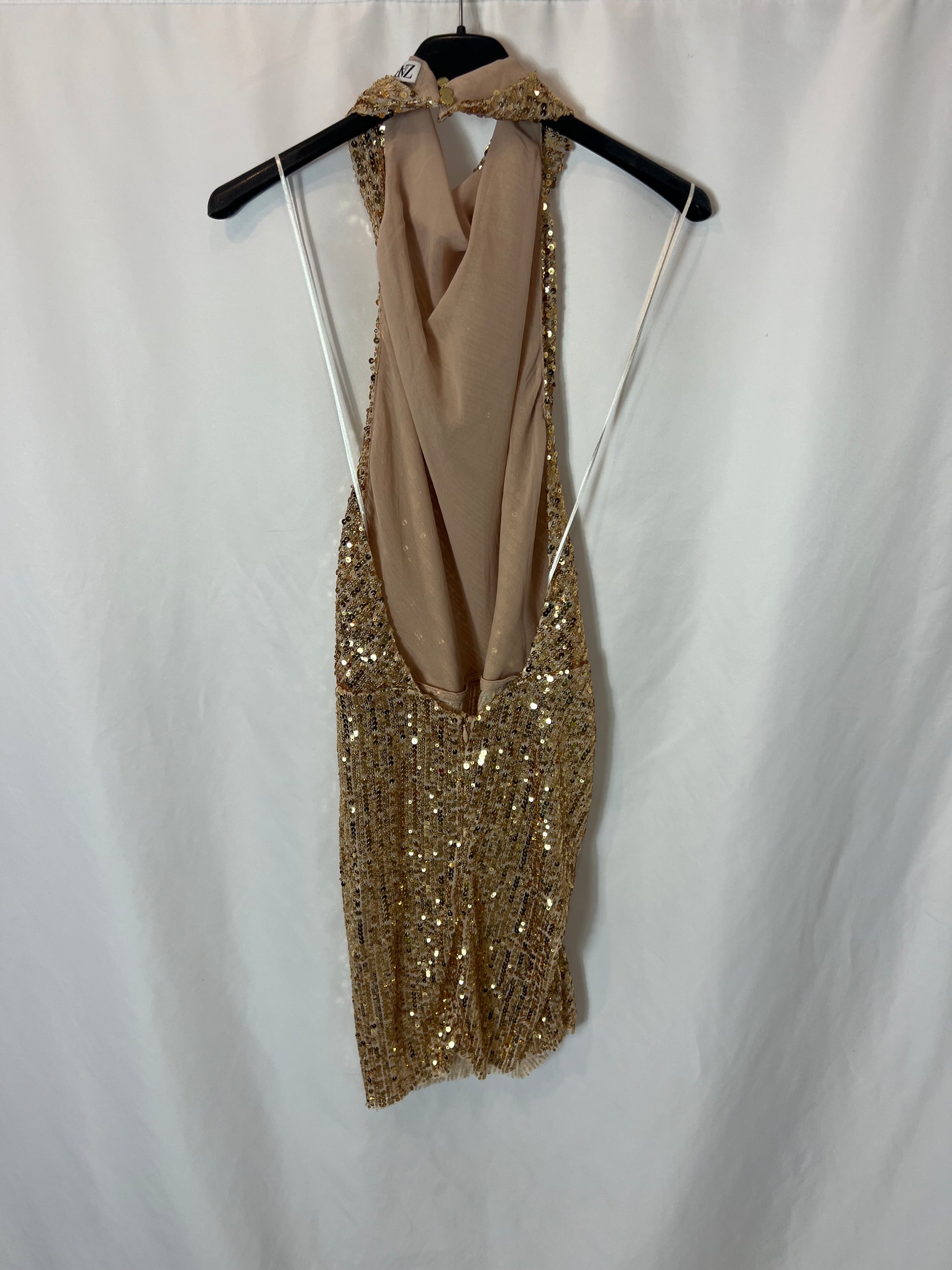 ZARA. Vestido dorados lentejuelas T.xs
